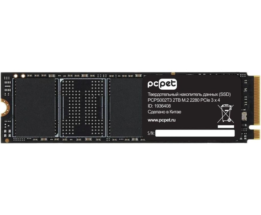 PC PET SSD накопитель PCPS002T3 2ТБ, M.2 2280, PCIe 3.0 x4, NVMe, M.2, oem
