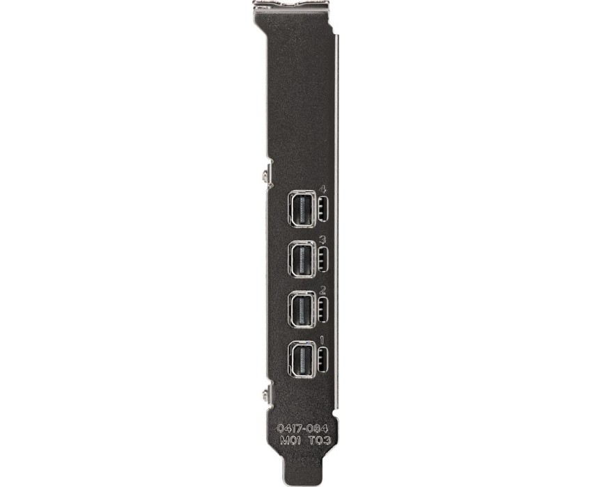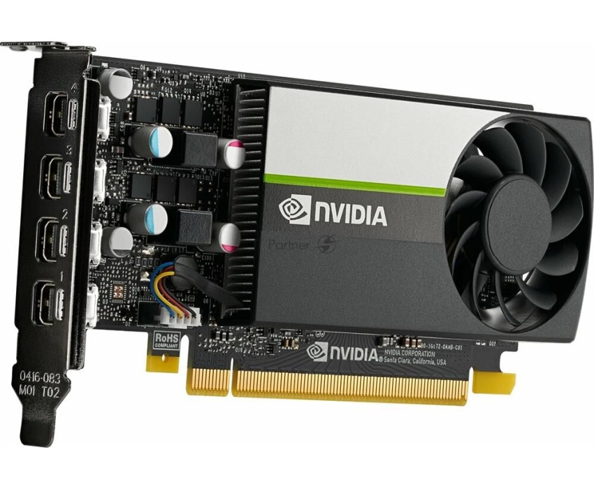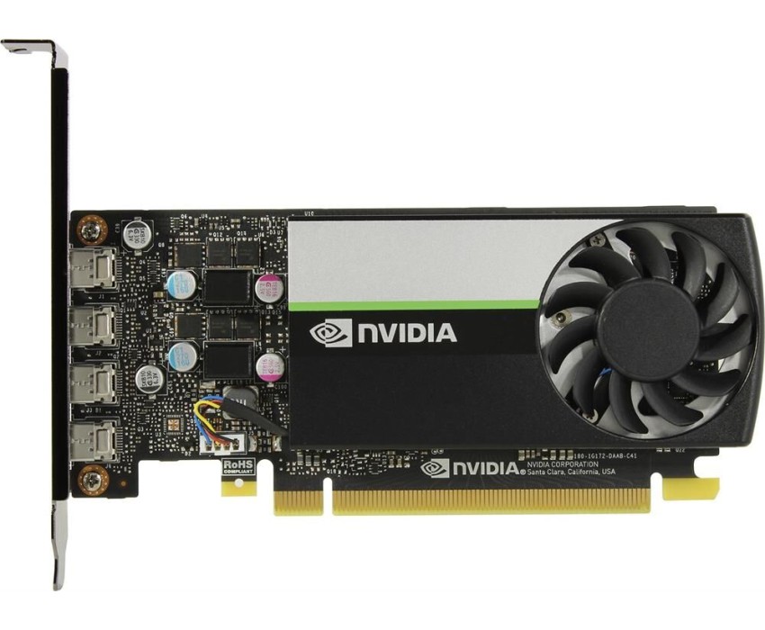 Тип видеопамяти: GDDR6. Тип поставки: Bulk. Техпроцесс: 12. Частота видеопамяти: 10000. Количество разъемов Mini DisplayPort: 4. Разъемы дополнительного питания: без дополнительного питания. Рекомендуемая мощность блока питания: 250. Система охлаждения: активное. Низкопрофильная видеокарта (Low Profile): да. Длина видеокарты: 152.4. Максимальное энергопотребление: 50. Версия разъема DisplayPort: 1.4. Конструкция системы охлаждения: однослотовая. Особенности: низкопрофильная карта (Low Profile). Габариты упаковки (ед) ДхШхВ: 0.35x0.18x0.09. Вес упаковки (ед): 0.5. Высота видеокарты: 69. Количество поддерживаемых мониторов: 4. Толщина видеокарты: 19. Архитектура графического процессора: Turing. Количество вентиляторов: 1. Поддержка DirectX: DirectX 12. Поддержка OpenGL: OpenGL 4.5. Тип вентилятора: осевой. Объем видеопамяти: 4. Гарантия: 36 мес.. Видеочипсет: NVIDIA T1000. Максимальное разрешение: 7680 х 4320. Разрядность шины видеопамяти: 128 bit. Частота графического процессора: 1065 МГц (1400 МГц, в режиме Boost). Интерфейс: PCI-E 3.0. Видеочипсет: NVIDIA T1000, 1065 МГц (1400 МГц, в режиме Boost); 12 нм. Особенности: низкопрофильная. Питание: без дополнительного питания, рекомендовано 250 Вт. Память: 4 ГБ GDDR6, 10000 МГц; 128 bit. Разъемы: Mini Display Port х 4. Интерфейс: PCI-E 3.0. Охлаждение: активное; с радиатором
