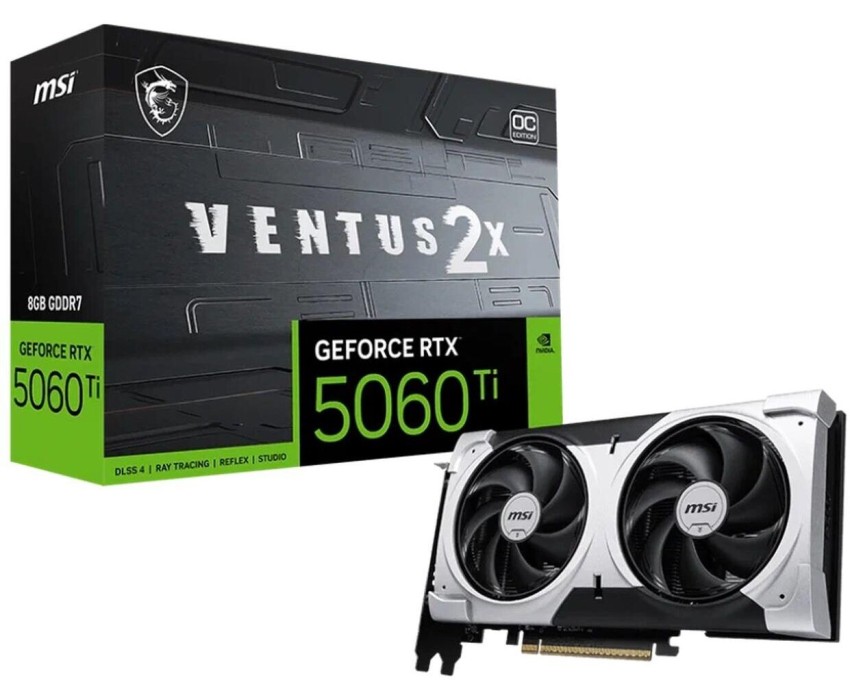 Видеокарта MSI Видеокарта NVIDIA GeForce RTX 5060TI RTX 5060 TI 8G VENTUS 2X PLUS 8ГБ Ventus 2X, GDDR7, Ret