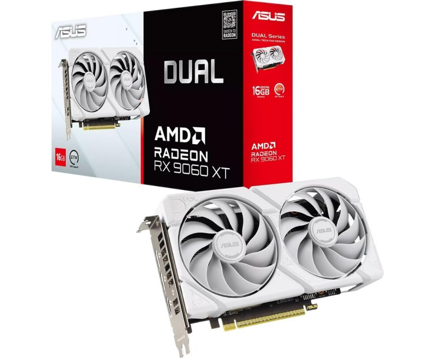 **Видеокарта ASUS RX9060XT DUAL WHITE — мощь и стиль в каждой детали!** Погрузитесь в мир реалистичной графики и плавного геймплея с видеокартой ASUS RX9060XT DUAL WHITE. Эта модель — идеальный выбор для геймеров и профессионалов, которые ценят высокую производительность и надёжность. **Почему стоит выбрать ASUS RX9060XT DUAL WHITE?** * **16 ГБ видеопамяти GDDR6:** наслаждайтесь высокими настройками графики без потери производительности. * **Ширина шины 128 бит:** быстрая передача данных для максимально плавного изображения. * **Два вентилятора:** эффективная система охлаждения обеспечивает стабильную работу даже при максимальных нагрузках. * **Интерфейсы 2xDP и HDMI:** возможность подключения нескольких мониторов для расширенного рабочего пространства или более захватывающего игрового опыта. * **Стильный белый дизайн:** эстетически привлекательная видеокарта, которая гармонично впишется в любой ПК. С видеокартой ASUS RX9060XT DUAL WHITE вы сможете: * играть в современные игры на высоких настройках; * работать с графически интенсивными приложениями; * наслаждаться чётким и ярким изображением. Не упустите шанс улучшить свой ПК с помощью видеокарты ASUS RX9060XT DUAL WHITE!