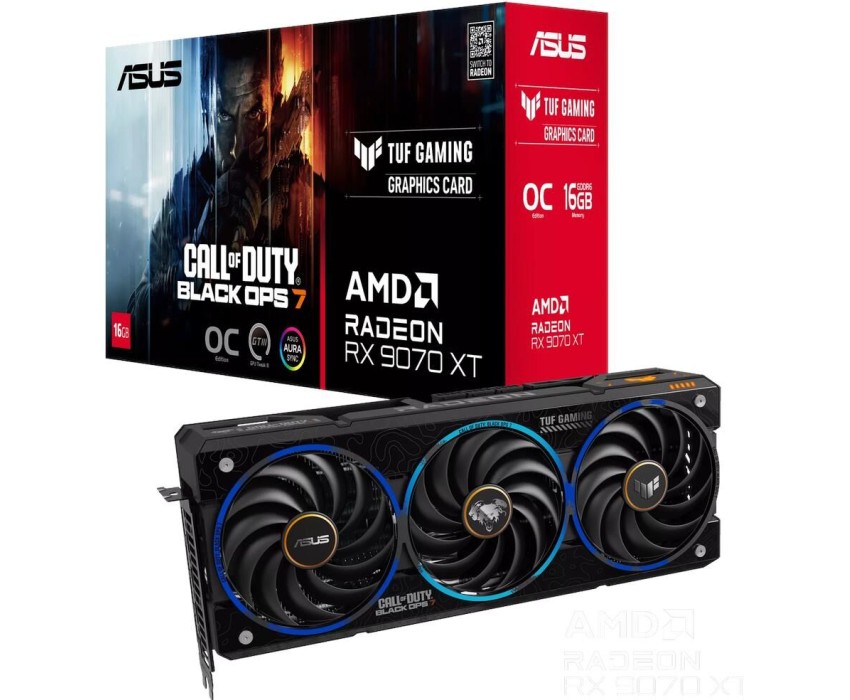 **Видеокарта ASUS RX9070XT TUF GAMING COD BO7 SPECIAL EDITION OC 16GB GDDR6 — мощь и стиль для настоящих геймеров!** Погрузитесь в мир игр с видеокартой ASUS RX9070XT TUF GAMING COD BO7 SPECIAL EDITION OC! Эта модель создана для тех, кто ценит высокую производительность и впечатляющее качество графики. **Почему стоит выбрать эту видеокарту?** * **Высокая производительность:** заводской разгон (Overclocking) и мощный графический процессор AMD Radeon RX 9070XT обеспечивают плавную работу даже в самых требовательных играх. * **Отличное качество изображения:** с максимальным разрешением 7680x4320 вы сможете насладиться каждой деталью игрового мира. * **Возможность подключения нескольких мониторов:** можно подключить до 4 мониторов — идеально для многозадачности и расширенного игрового пространства. * **Эффективное охлаждение:** 3 вентилятора обеспечивают надёжное охлаждение, что позволяет поддерживать стабильную работу видеокарты даже во время длительных игровых сессий. * **Удобство подключения:** 3 разъёма DisplayPort и 1 разъём HDMI дают широкие возможности для подключения различных устройств. **Технические характеристики:** * объём видеопамяти: 16 ГБ; * тип видеопамяти: GDDR6; * разрядность шины видеопамяти: 256 бит; * разъёмы дополнительного питания: 8pin + 8pin + 8pin; * длина видеокарты (PCB): 330 мм; * количество занимаемых слотов: 3. С видеокартой ASUS RX9070XT TUF GAMING COD BO7 SPECIAL EDITION OC ваши игры заиграют новыми красками!