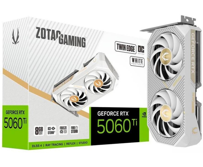ZOTAC Видеокарта RTX5060Ti TWIN EDGE OC WHITE ED 8GB GDDR7 128bit 3xDP HDMI 2FAN RTL