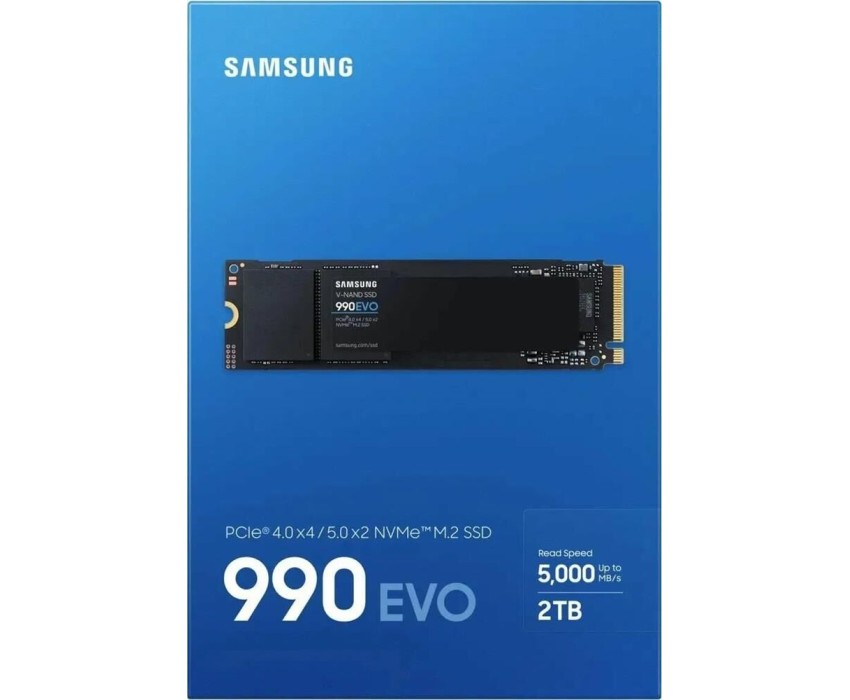 Твердотельный накопитель SSD Samsung M.2 2280 2TB 990 EVO NVMe 2.0, PCIe 4.0 x4, V-NAND TLC, R/W 5000/4200MB/s, IOPs 700 000/800 000, TBW 1200, DWPD 0.33