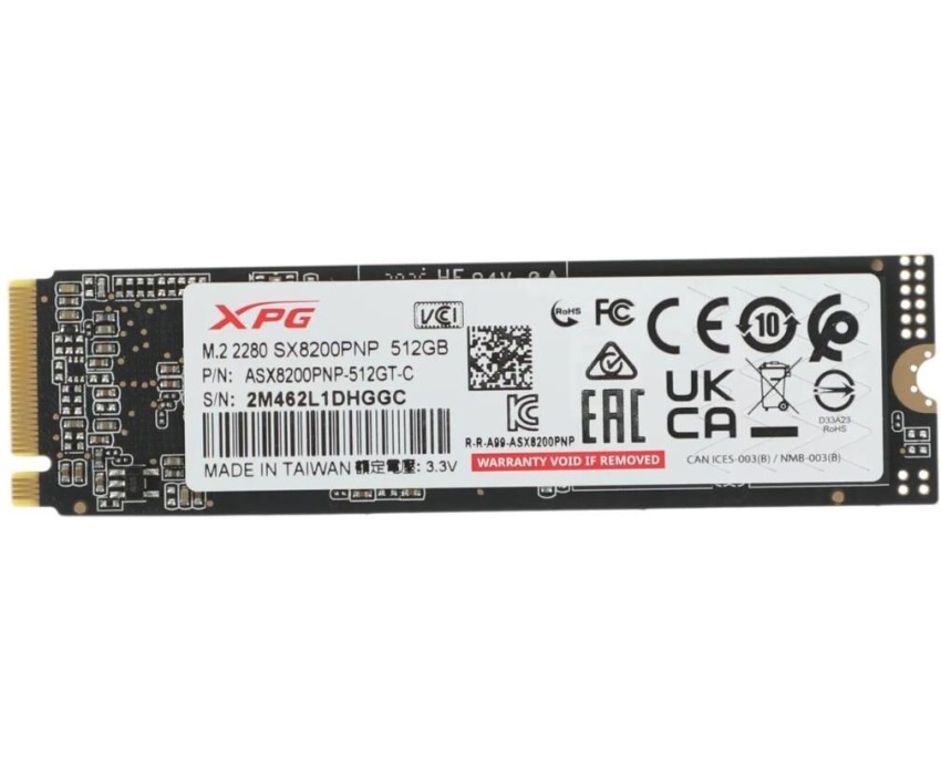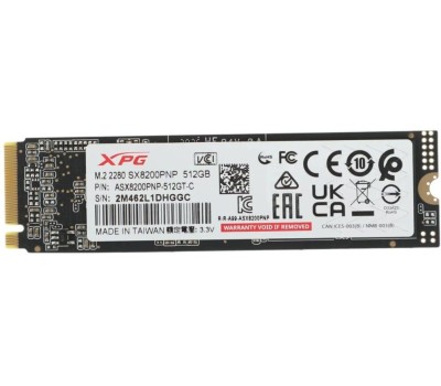 Накопитель SSD XPG SX8200 Pro, 512 ГБ, PCIe 3.0 x4, M.2 2280, NVMe, R/W 3350/2350, с радиатором