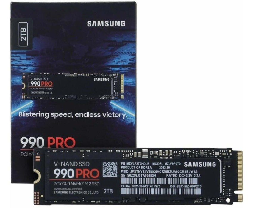 Накопитель SSD Samsung 990 PRO, 2TB, PCIe 4.0 x4, M.2 2280, NVMe, R/W 7450/6900
