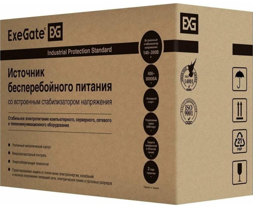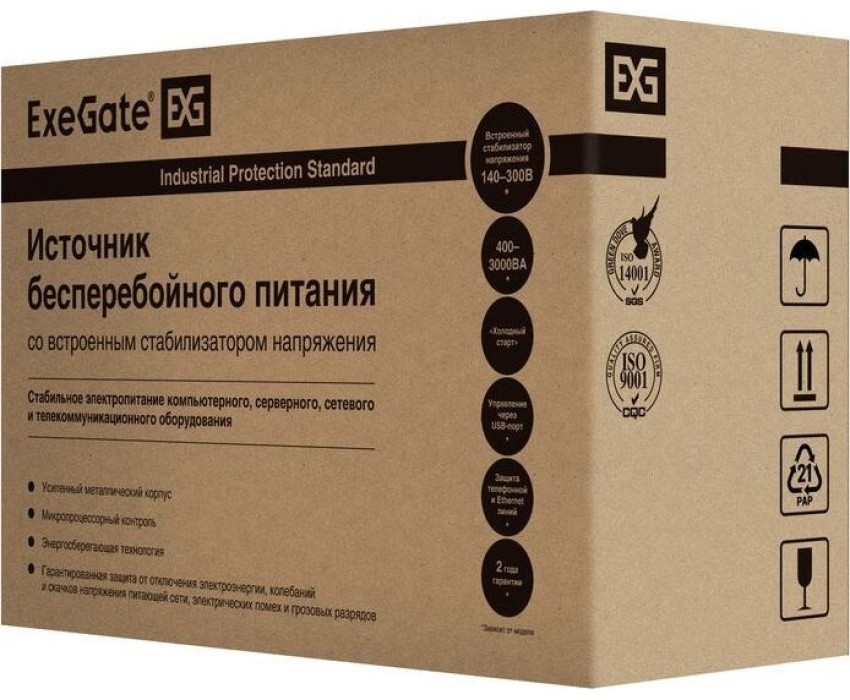 ИБП серии Power Back BNB, являются линейно-интерактивными, оснащены встроенным устройством автоматического регулирования напряжения (AVR); полная мощность, ВА - 400, батарея - ExeGate HR 12-4,5 (12V/4,5Ач), номинальное напряжение, В- 230, диапазон напряжений, В - 140-300, частота, Гц - 50/60±5, защита и фильтрация от высоковольтных выбросов, электромагнитных и радиочастотных помех, понижения, повышения и полного исчезновения напряжения в электросети.