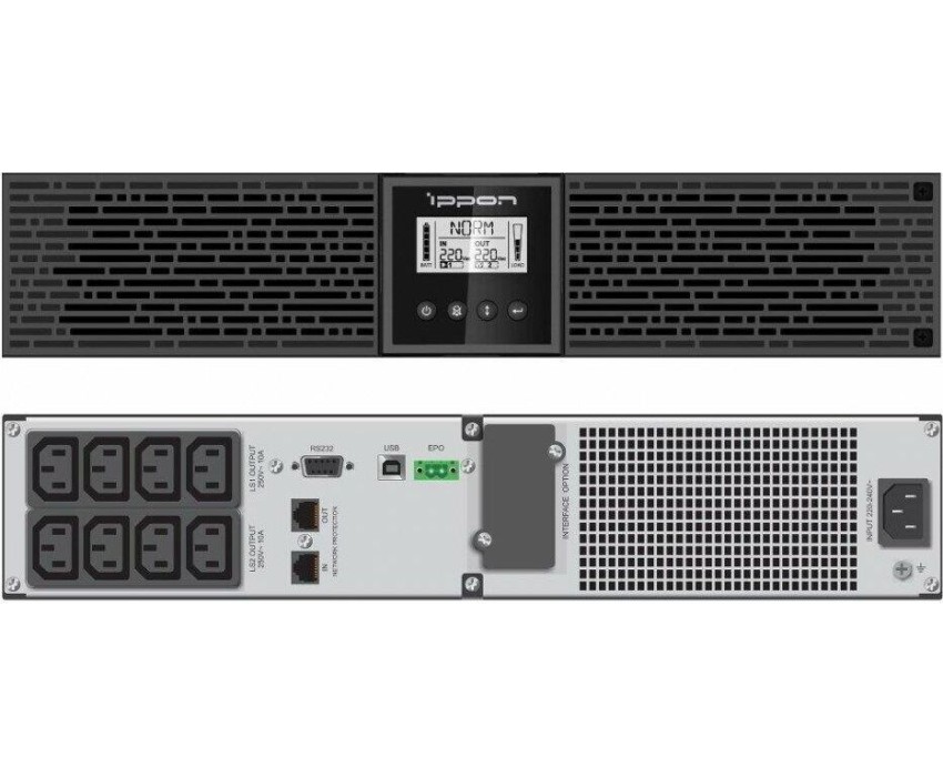 Линейно-интерактивный ИБП Ippon Smart Winner II 2000E рассчитан на восемь потребителей. Поддерживает выбор номинального выходного напряжения: 220 В, 230 В или 240 В. Формирует на выходе сигнал в форме чистой синусоиды. Полная мощность — 2000 ВА, активная — 1800 Вт. ИБП работает в режимах: Нормального диапазона — питание от внешней электросети при перепадах напряжения до ±20 % от номинального значения.