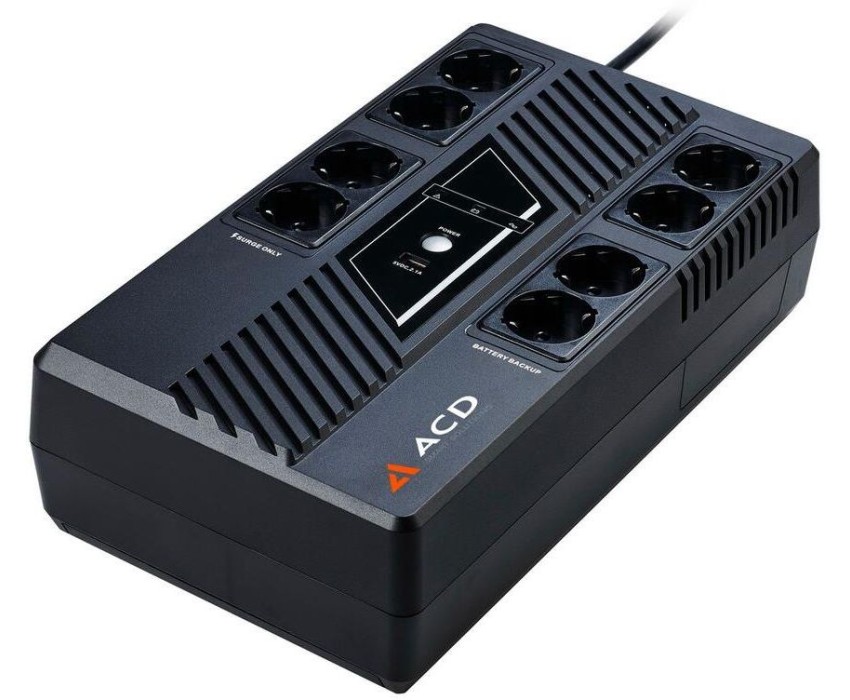 **Источник бесперебойного питания (ИБП) ACD PW-Entry 800** ACD PW-Entry 800 — это надёжный и эффективный источник бесперебойного питания, который обеспечивает защиту вашей техники от скачков напряжения и перебоев в электроснабжении. Он идеально подходит для использования дома или в офисе, где важно сохранить работоспособность оборудования при отключении электроэнергии. **Основные характеристики:** * Мощность: 800 ВА / 480 Вт. * Тип: линейно-интерактивный. * Время работы от батареи: зависит от нагрузки. * Количество выходных разъемов питания: 3 (с питанием от батарей — 2). * Возможность замены батарей: есть. ИБП ACD PW-Entry 800 имеет компактный размер и прост в использовании. Он оснащён функцией автоматического регулирования напряжения (AVR), которая позволяет поддерживать стабильное напряжение на выходе даже при значительных колебаниях входного напряжения. Это помогает предотвратить повреждение подключённого оборудования и продлить срок его службы. Если вы ищете надёжный и доступный ИБП для защиты вашей электроники от проблем с электропитанием, то ACD PW-Entry 800 может стать отличным выбором. Он обеспечит вам спокойствие и уверенность в том, что ваша техника будет работать без сбоев даже в случае отключения электричества.