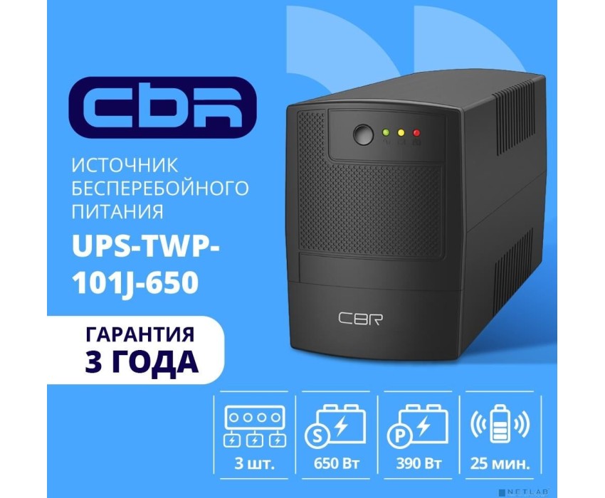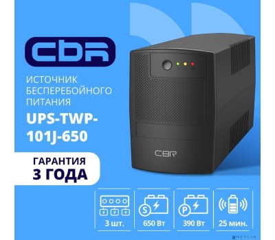 CBR TECH ИБП CBR [UPS-TWP-101J-650] 650VA/390W, Schuko CEE 7 x2 outlets, LED, AVR, SEC, 12V/7Ah