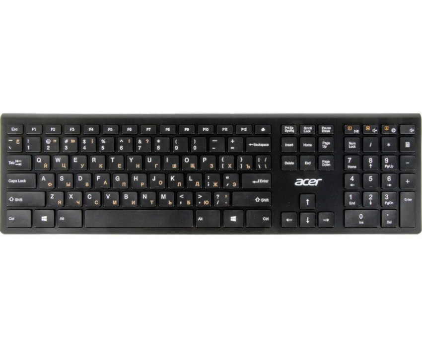 Бренд: ACER Цвет: черный Клавиатура Slim-дизайна: ДА Тип: Клавиатура Модель: OKR020 PartNumber/Артикул Производителя: ZL.KBDEE.004 Основной цвет: черный Тип соединения клавиатуры: беспроводной Тип беспроводного соединения клавиатуры: Радиоканал Интерфейс: USB Мультимедийные дополнительные клавиши: ДА Радиус действия клавиатуры: 10 м Клавиши островного типа: ДА Дизайн клавиш: квадратные Цвет русских букв: оранжевый Цвет английских букв: белый Цвет корпуса клавиатуры: черный Цвет клавиш: черный Ширина клавиатуры: 436.3 мм Материал корпуса: пластик Особенности: ножничный механизм нажатия Габариты упаковки (ед) ДхШхВ: 0.45x0.13x0.03 м Вес упаковки (ед): 0.58 кг Объем упаковки (ед): 0.001755 м3 Глубина клавиатуры: 125 мм Размеры клавиатуры: 436.3x25x125мм Высота клавиатуры: 25 мм Клавиатура с русскими буквами: ДА Вес (клавиатуры): 0.443 кг Страна производства: Китай Количество элементов питания: 2 Количество клавиш: 109 Ресурс клавиш (нажатий): 5000000 Тип механизма клавиш: ножничная Расположение символов: лицевая сторона Формат раскладки: ANSI (американский) Число одновременных подключений: 1 Тип элементов питания: ААА Размер раскладки: 100% Конструктив клавиатуры: низкопрофильная, островная Особенности клавиш: клавиши управления мультимедиа, низкопрофильные клавиши Конструктивные особенности: цифровой блок Совместимые операционные системы: Android, IOS, MacOS, Windows