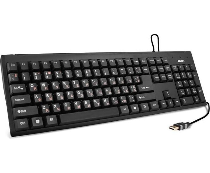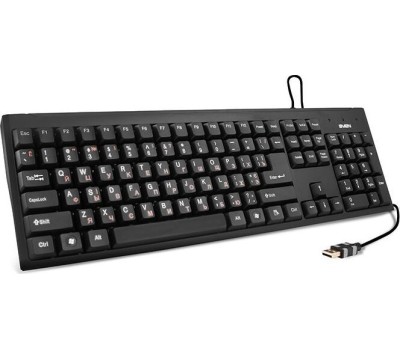 Клавиатура проводная, интерфес USB, количество клавиш - 104, влагоустойчивая, традиционная раскладка, комфортный , тихий ход, длина кабеля - 1,5 м.