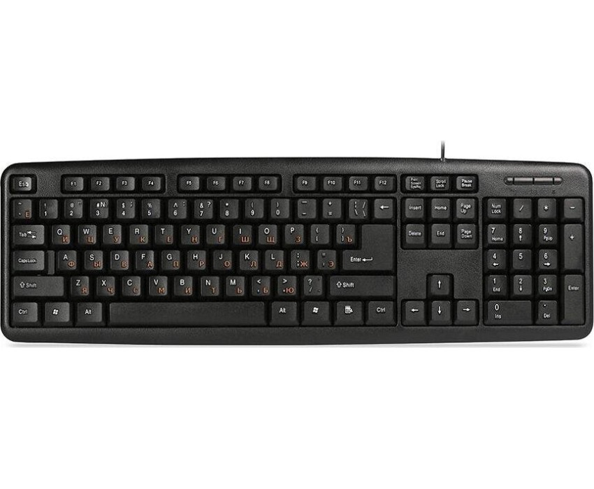 Тип Мембранная Количество клавиш 104 Дополнительный клавиши 12 (одновременно с клавишей FN) Вид дополнительных клавиш Мультимедийные Функциональные Интернет Низкопрофильные клавиши Да Индикаторы Num Lock / Scroll Lock / Caps Lock Конструктивные особенности Полноразмерная, стандартная раскладка Интерфейс подключения USB Материал корпуса Пластик Подсветка Нет Цифровой блок Да Защита от влаги Нет Бесшумное нажатие Нет Тип подключения Проводная Длина кабеля 1,4 м Системные требования Windows (98SE; 2000; XP; Vista; 7; 8; 10) Питание USB порт Размер 438*134*21 мм Вес 340 г Условия транспортировки Не требует особых условий транспортировки Срок службы 5 лет Срок гарантии 12 мес Тип упаковки Коробка Материал упаковки Картон Материал изготовления Пластик/металл