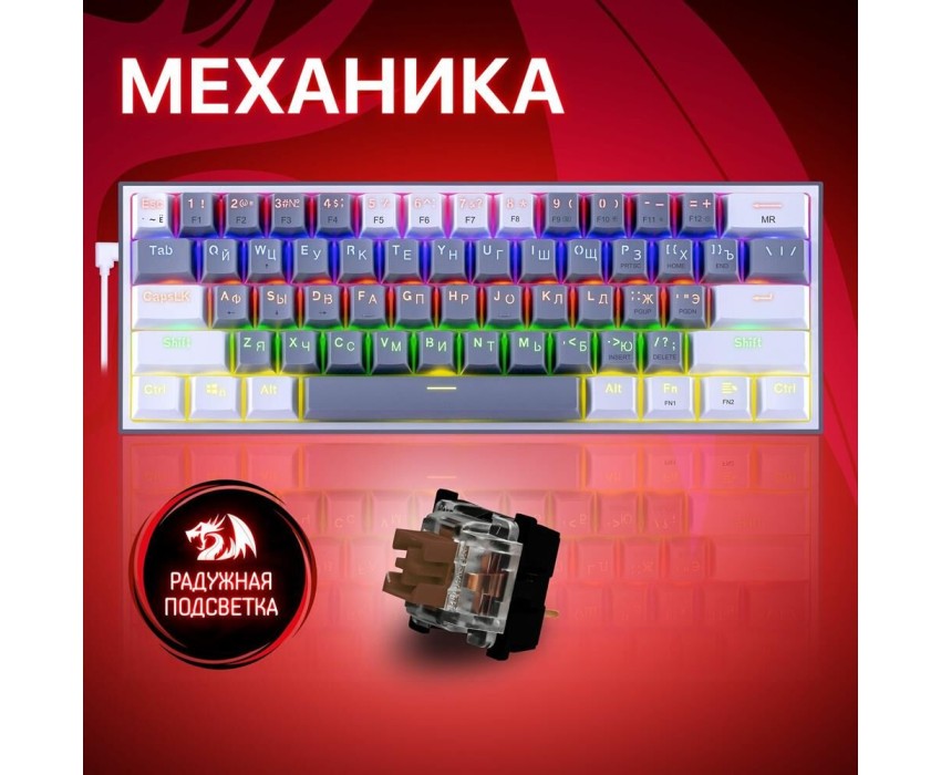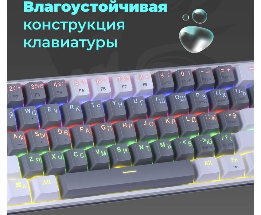 Клавиатура REDRAGON (70675) Fizz Радужн,61 клав,тих,серо-бел.