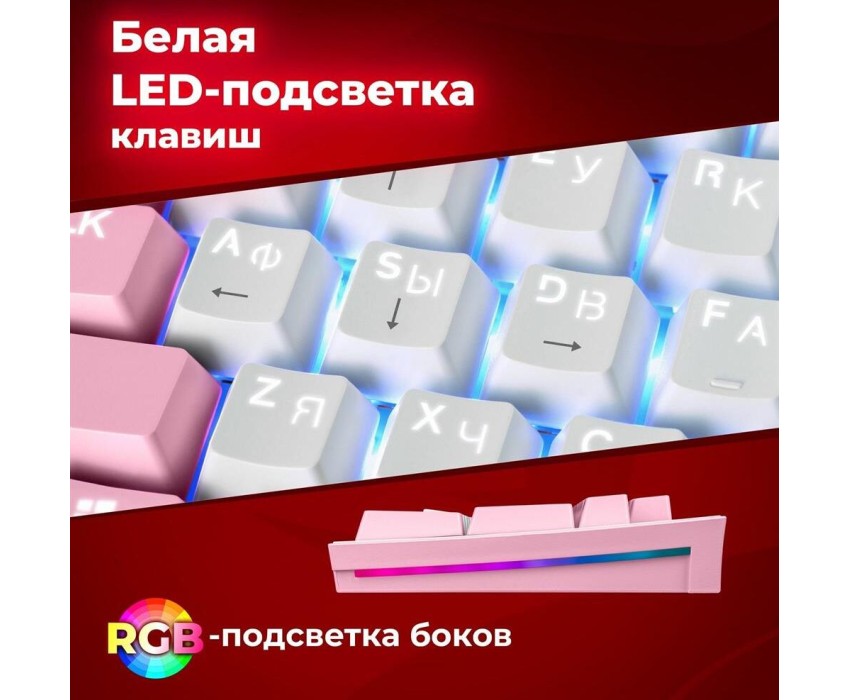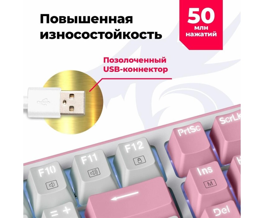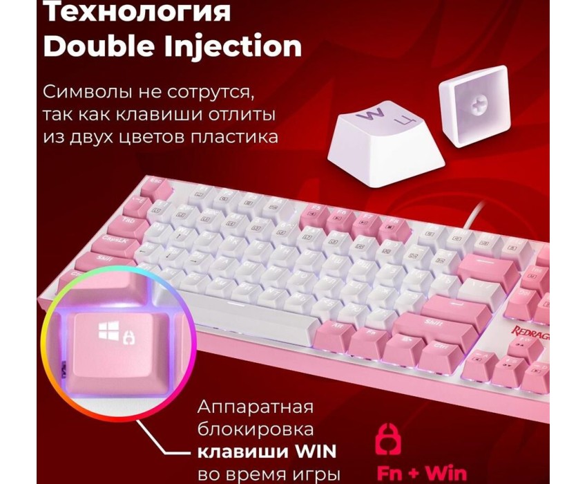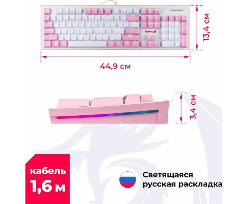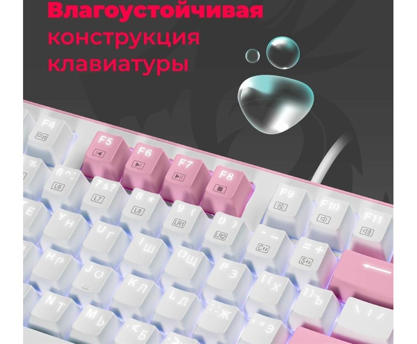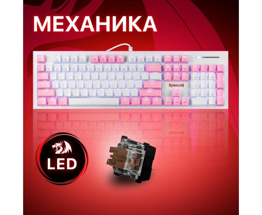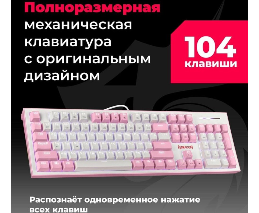 Клавиатура REDRAGON (70821) Hades Бело-розовая, тихая, 104 кн.