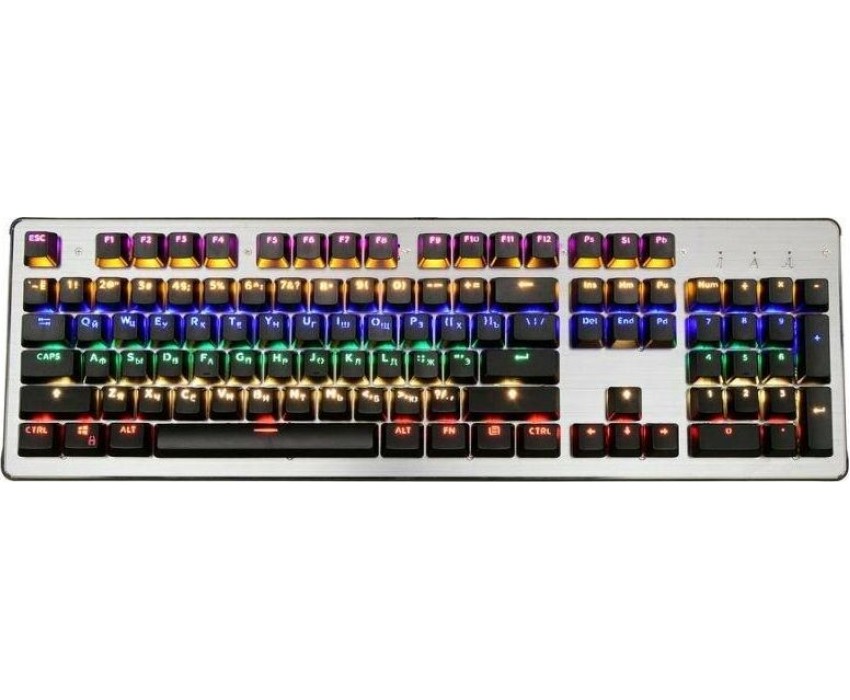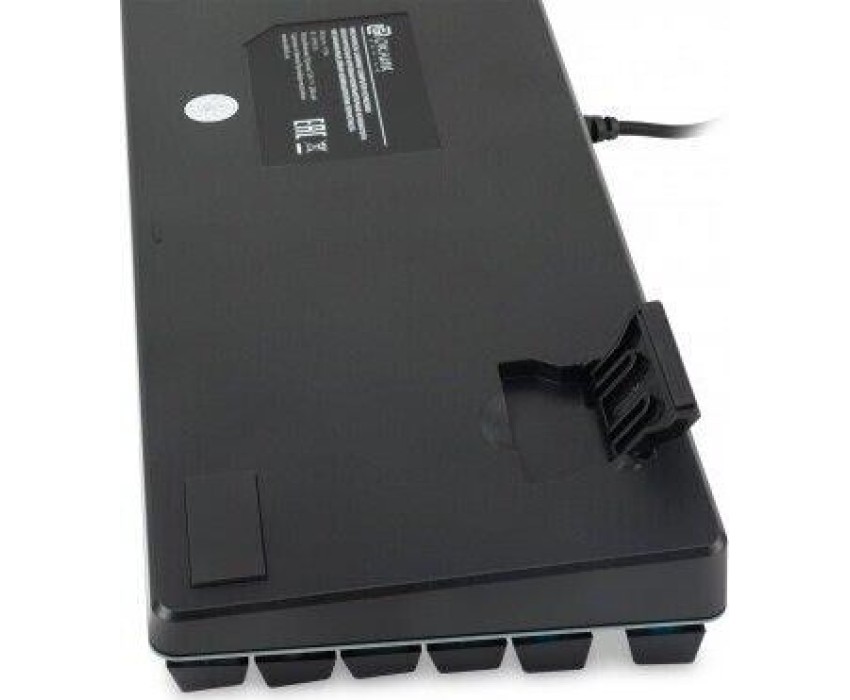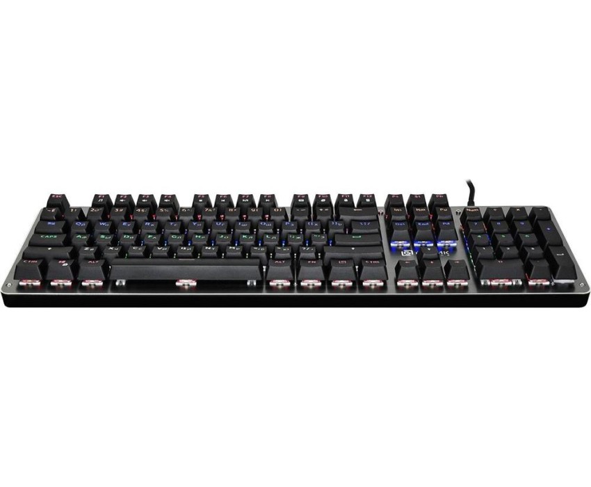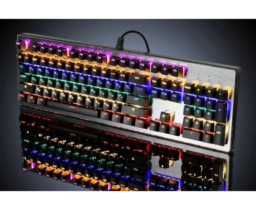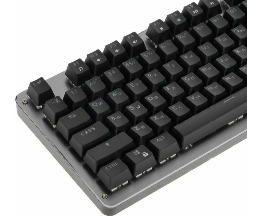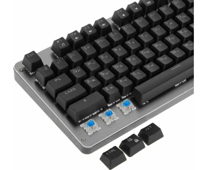 Интерфейс: USB. Мультимедийные дополнительные клавиши: есть. Для геймеров: да. Обычная/тонкая: обычная. Клавиатура с русскими буквами: да. Особенности: Anti-Ghosting неограниченное количество одновременных нажатий Ресурс клавиш до 50 000 000 нажатий Мультимедийные клавиши (FN-F1-F12) 6 цветов подсветки 5 увроней яркости кабель в прочной плетеной оплетке 10 режимов подсветки. Тип: Клавиатура. Дизайн клавиш: квадратные. Длина кабеля: 1.5. Цвет английских букв: серый. Цвет русских букв: серый. Цвет клавиш: черный. Цвет корпуса клавиатуры: черный. Материал корпуса: пластик/металл. Механическая: да. Тип соединения: проводная. Количество клавиш: 87. Тип подсветки: многоцветная. Тип механических переключателей: Blue. Габариты упаковки (ед) ДхШхВ: 0.388x0.156x0.041. Вес упаковки (ед): 0.86. Комплектация: Полную комплектацию товара уточняйте у производителя. Гарантия: 12 мес.. Размеры клавиатуры (ШхВхГ): 360 х 35 х 160 мм. Цвет: черный. Особенности клавиш: интернет-клавиши. Тип механизма клавиш: механическая. Интерфейс: USB. Тип соединения: проводная. Особенности: для геймеров