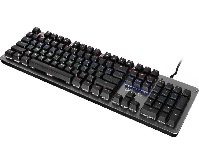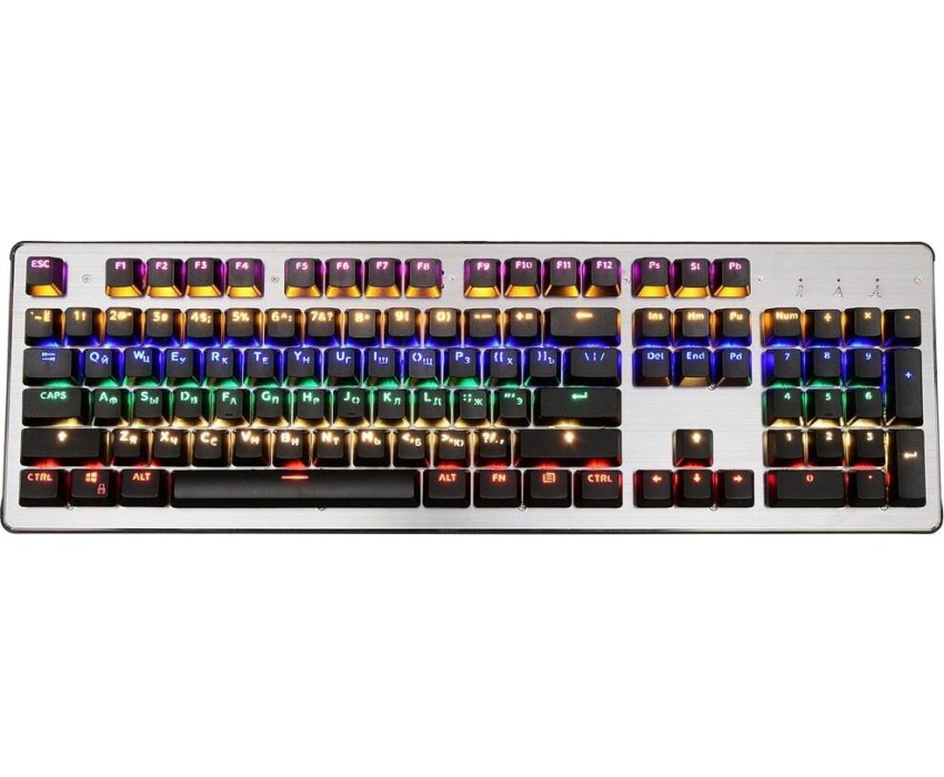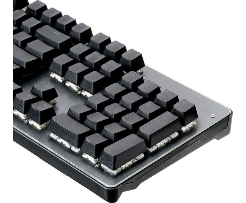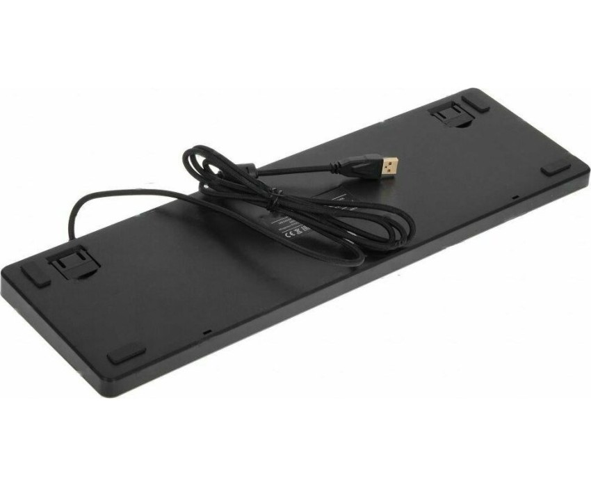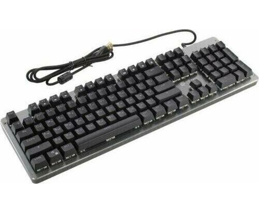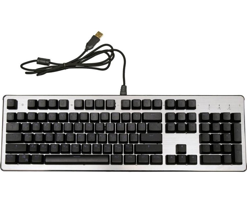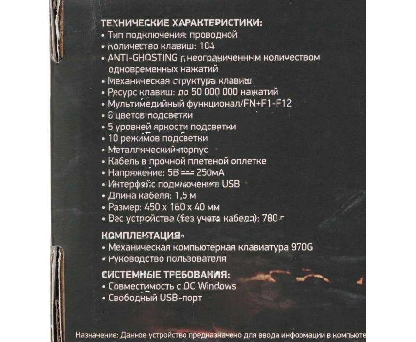 Интерфейс: USB. Мультимедийные дополнительные клавиши: есть. Для геймеров: да. Обычная/тонкая: обычная. Клавиатура с русскими буквами: да. Особенности: Anti-Ghosting неограниченное количество одновременных нажатий Ресурс клавиш до 50 000 000 нажатий Мультимедийные клавиши (FN-F1-F12) 6 цветов подсветки 5 увроней яркости кабель в прочной плетеной оплетке 10 режимов подсветки. Тип: Клавиатура. Дизайн клавиш: квадратные. Длина кабеля: 1.5. Цвет английских букв: серый. Цвет русских букв: серый. Цвет клавиш: черный. Цвет корпуса клавиатуры: черный. Материал корпуса: пластик/металл. Механическая: да. Тип соединения: проводная. Количество клавиш: 87. Тип подсветки: многоцветная. Тип механических переключателей: Blue. Габариты упаковки (ед) ДхШхВ: 0.388x0.156x0.041. Вес упаковки (ед): 0.86. Комплектация: Полную комплектацию товара уточняйте у производителя. Гарантия: 12 мес.. Размеры клавиатуры (ШхВхГ): 360 х 35 х 160 мм. Цвет: черный. Особенности клавиш: интернет-клавиши. Тип механизма клавиш: механическая. Интерфейс: USB. Тип соединения: проводная. Особенности: для геймеров