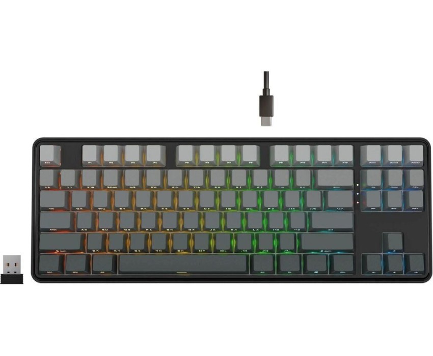Интерфейс: USB. Тип беспроводного соединения клавиатуры: Bluetooth/Радиоканал. Для геймеров: да. Обычная/тонкая: обычная. Подсветка клавиш: есть. Клавиатура с русскими буквами: ДА. Дизайн клавиш: квадратные. Длина кабеля: 1.5. Радиус действия клавиатуры: 10. Тип элементов питания: собственный Li-ion аккумулятор. Максимальное время работы: 300 часов. Цвет английских букв: прозрачный. Цвет русских букв: прозрачный. Материал корпуса: пластик. Вес: 0.84. Подходит для ТВ: да. Механическая: да. Тип соединения: беспроводная. Количество клавиш: 87. Тип подсветки: RGB. Тип механических переключателей: Redragon Mint Mambo L. Страна производитель: Китай. Время отклика: 10. Гарантия: 12 мес.. Размеры клавиатуры (ШхВхТ): 364 х 37 х 133 мм. Цвет: серый,черный. Конструктив клавиатуры: компактная. Особенности клавиш: клавиша функции (Fn), клавиши управления мультимедиа, управление подсветкой. Конструктивные особенности: разъемы USB, шумоизоляция корпуса. Интерфейс: USB. Цвет русских букв: прозрачный. Особенности: подходит для ТВ, для геймеров. Встроено: подсветка клавиш. Тип соединения: беспроводная. Конструктив: механическая. Беспроводной интерфейс: Bluetooth/Радиоканал. Цвет английских букв: прозрачный