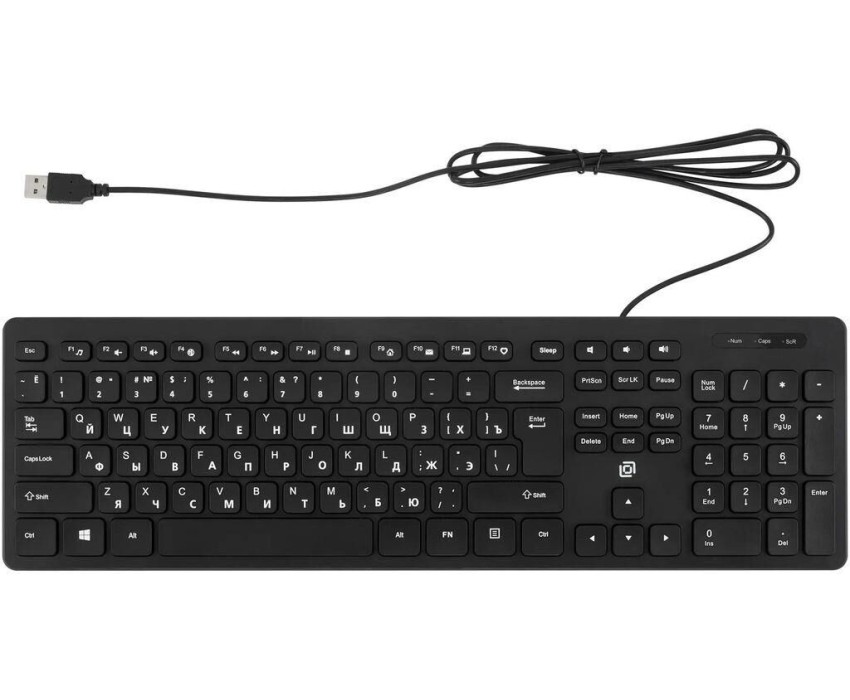 OKLICK Клавиатура Оклик K733 черный USB slim Multimedia кабель 1.75м