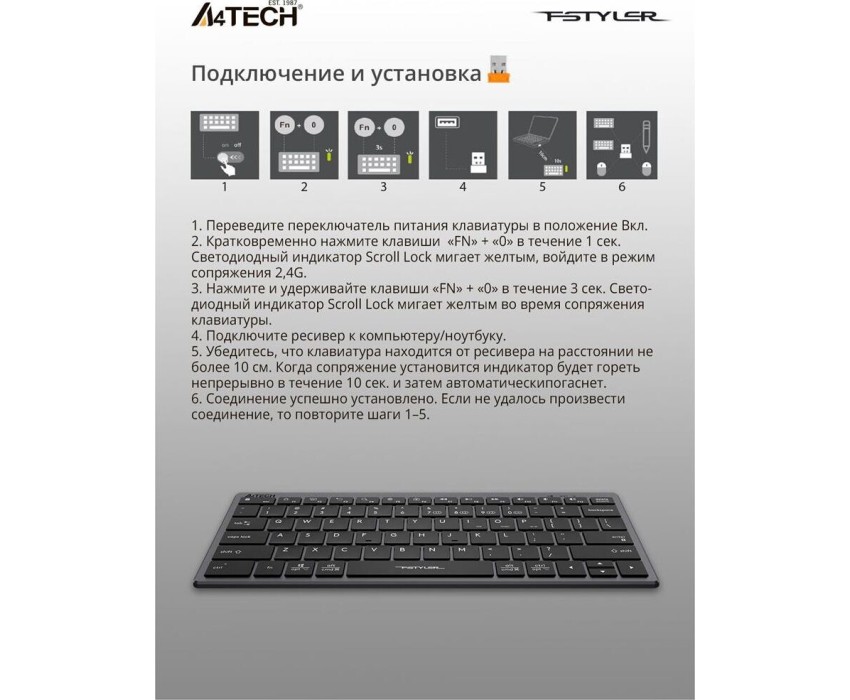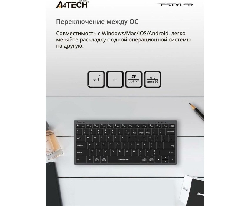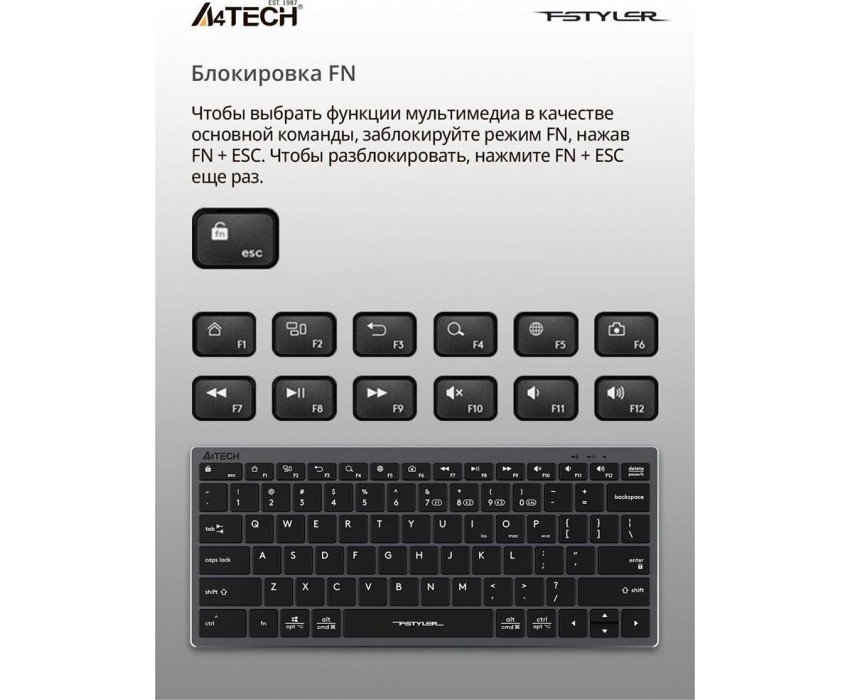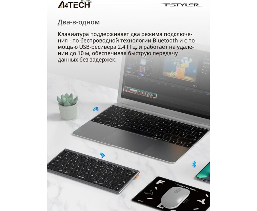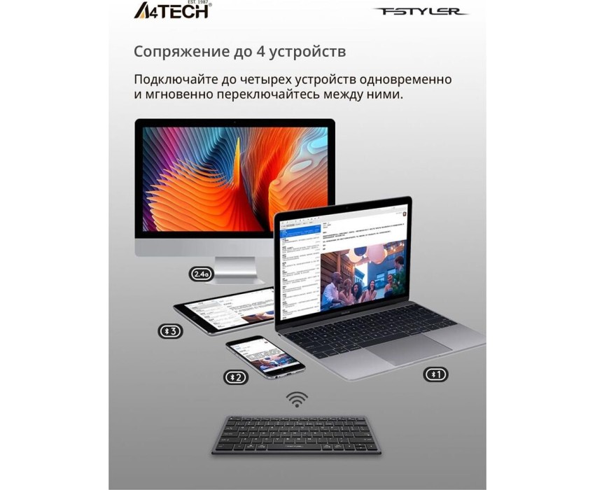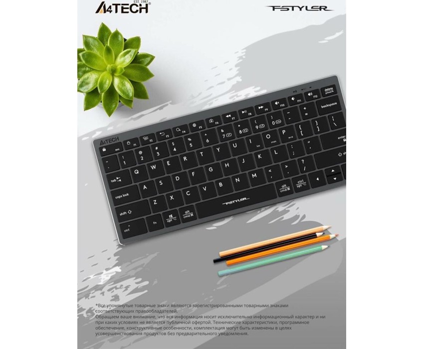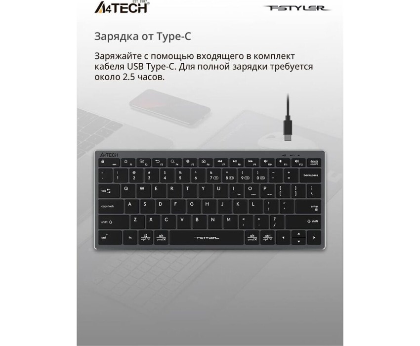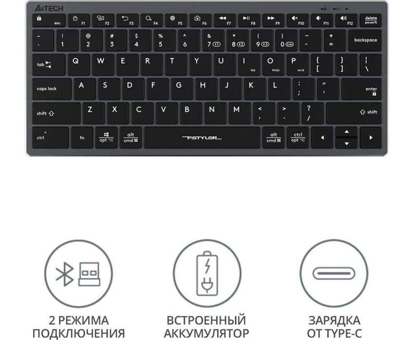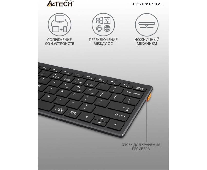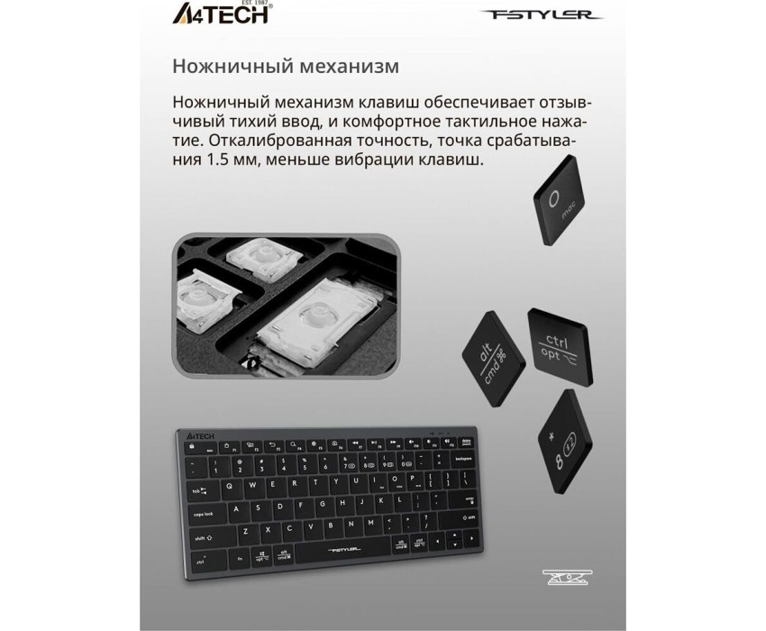 A4TECH Клавиатура Fstyler FBX51C, беспроводная, USB, Bluetooth/Радиоканал, ножничная, серый [fbx51c grey]