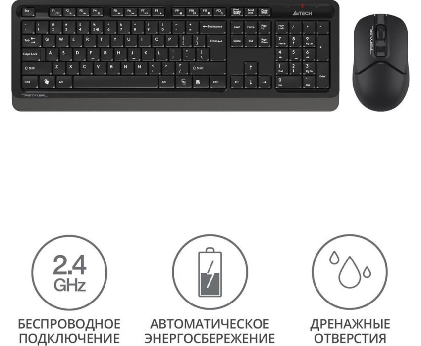 A4TECH A-4Tech Клавиатура + мышь Fstyler FG1012 клав:черный/серый мышь:черный USB беспроводная Multimedia [1599033]