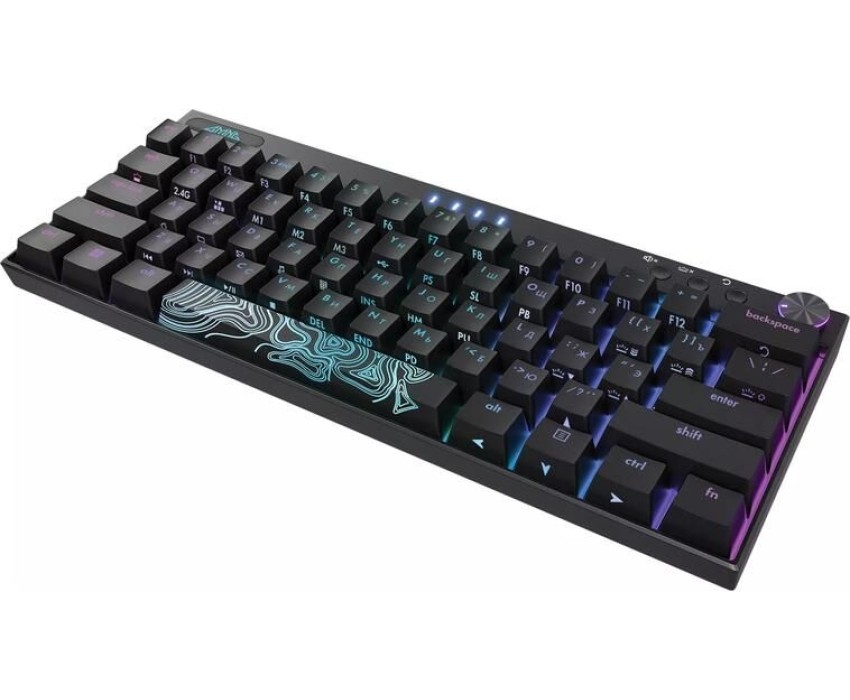 Интерфейс: USB. Тип беспроводного соединения клавиатуры: Bluetooth/Радиоканал. Мультимедийные дополнительные клавиши: есть. Для геймеров: да. Обычная/тонкая: обычная. Подсветка клавиш: есть. Клавиатура с русскими буквами: ДА. Дизайн клавиш: квадратные. Длина кабеля: 1.8. Радиус действия клавиатуры: 10. Тип элементов питания: собственный Li-ion аккумулятор. Максимальное время работы: 7 дней. Цвет английских букв: прозрачный. Цвет русских букв: прозрачный. Материал корпуса: пластик. Вес: 0.47. Механическая: да. Тип соединения: беспроводная. Количество клавиш: 61. Тип подсветки: RGB. Тип механических переключателей: GMNG Red. Габариты упаковки (ед) ДхШхВ: 0.335x0.045x0.345. Вес упаковки (ед): 0.83. Гарантия: 12 мес.. Размеры клавиатуры (ШхВхТ): 290 х 38 х 120 мм. Цвет: и черный. Конструктивные особенности: регулятор громкости. Особенности: мультимедийная, для геймеров. Конструктив: механическая. Цвет русских букв: прозрачный. Встроено: подсветка клавиш. Беспроводной интерфейс: Bluetooth/Радиоканал. Цвет английских букв: прозрачный. Тип соединения: беспроводная. Интерфейс: USB