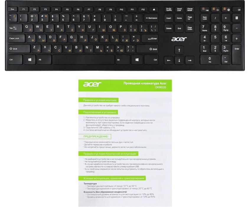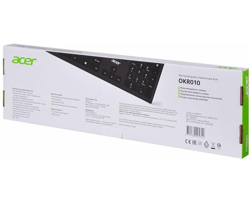 Acer OKR010 [ZL.KBDEE.003] Wireless keyboard USB slim Multimedia black