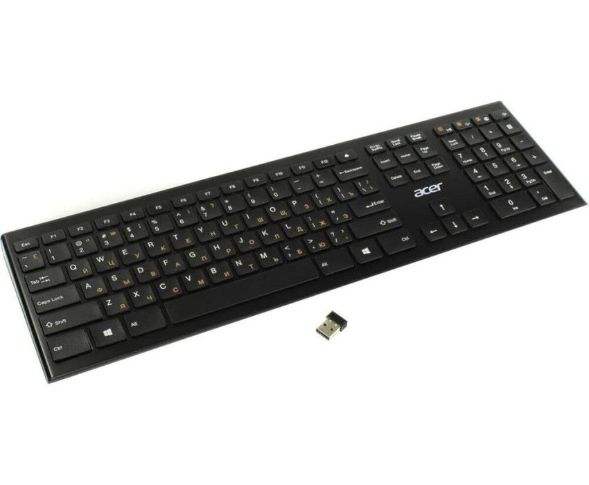 Беспроводная клавиатура Acer OKR010 выполнена из пластика черного цвета. Данная модель универсальна и хорошо подойдет к интерьеру любого кабинета, как для школьников, так и для офисных работников. Ввиду отсутствующего провода соединение с компьютером осуществляется при помощи USB коннектора.