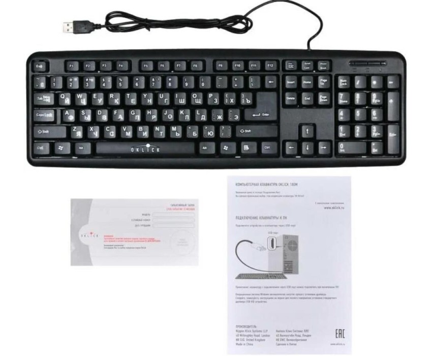 Клавиатура Oklick 180M черный USB