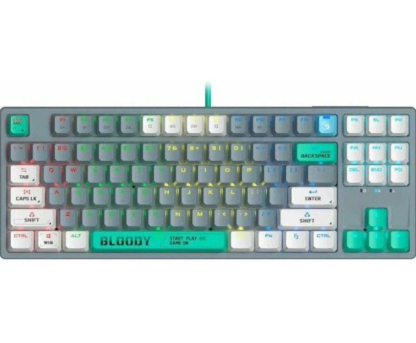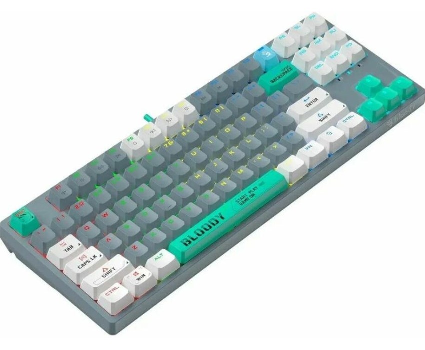 A4TECH Клавиатура проводная Bloody S87 Energy grey/green (механическая, USB, for gamer, LED) (S87 USB ENERGY ASH)