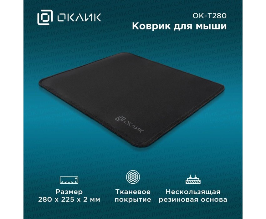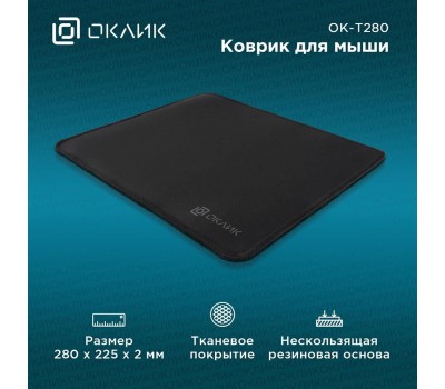 OKLICK Коврик для мыши OK-T280 (S) черный, нейлоновая ткань, 280х225х2мм