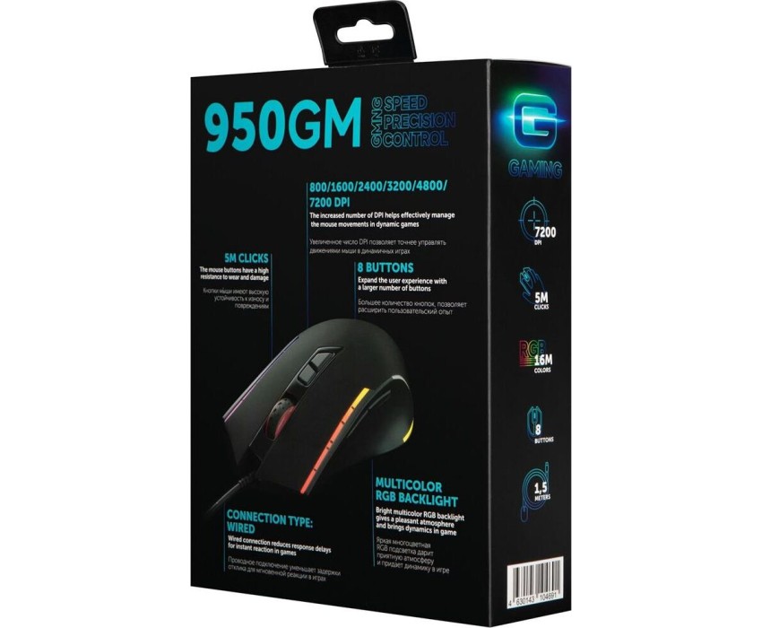 GMNG Мышь проводная 950GM, игровая, оптическая, USB, 7200dpi, черный [1533300]