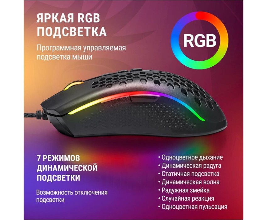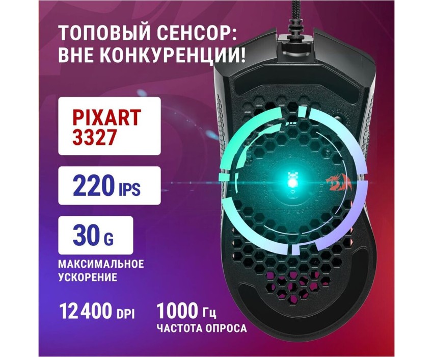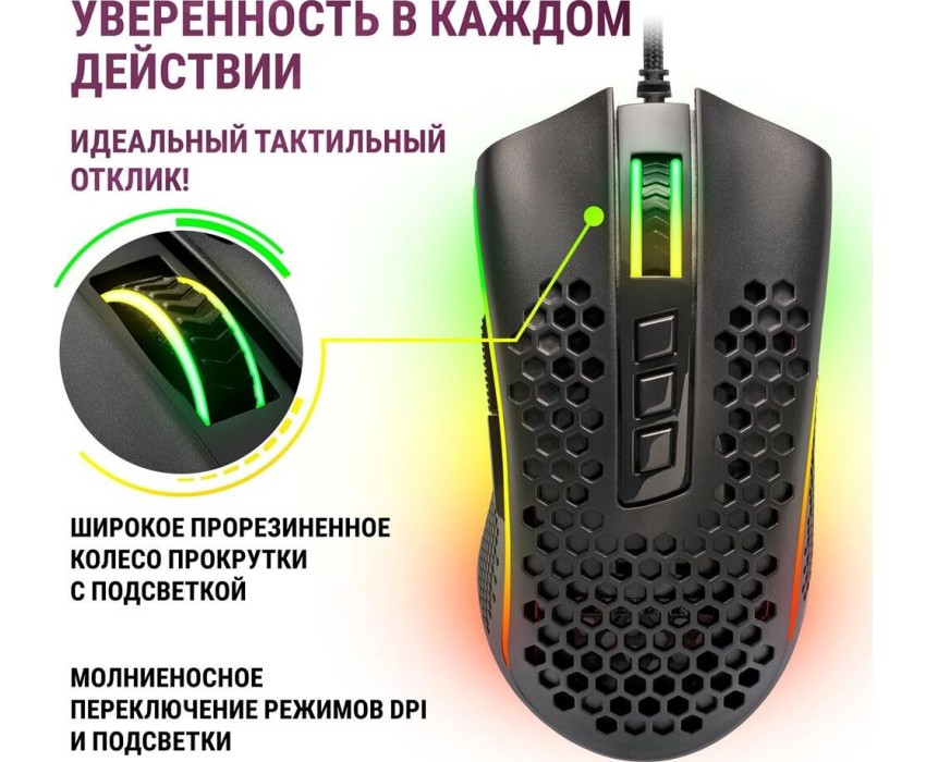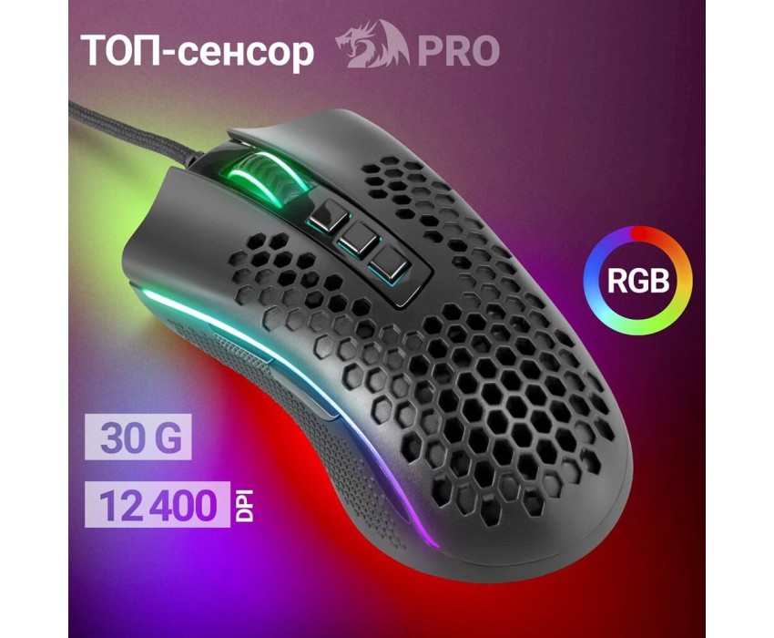 Проводная игровая мышь REDRAGON (71122) Storm Basic 12400 DPI, черная, легкая