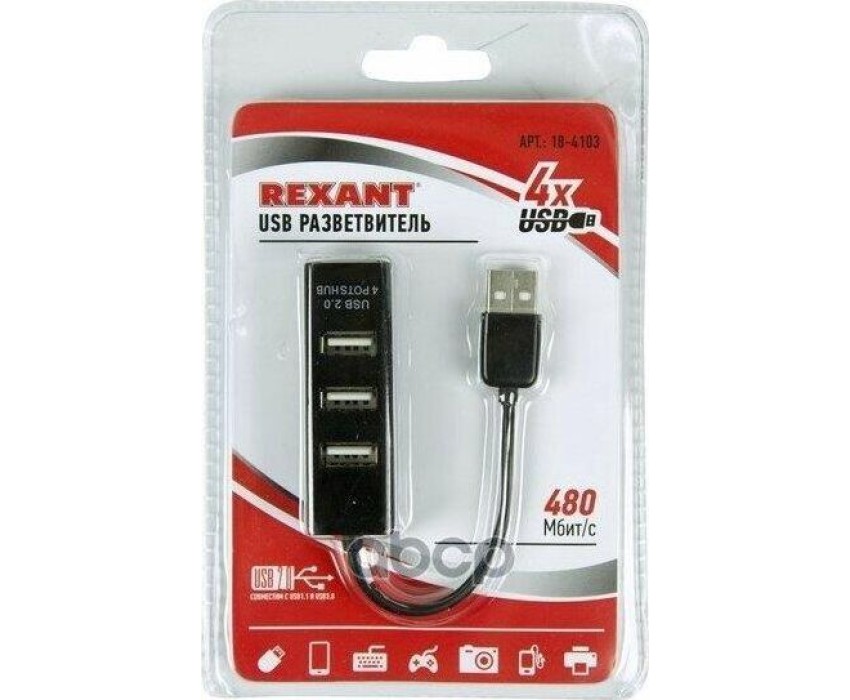 USB-хаб REXANT (18-4103) 4 порта, черный