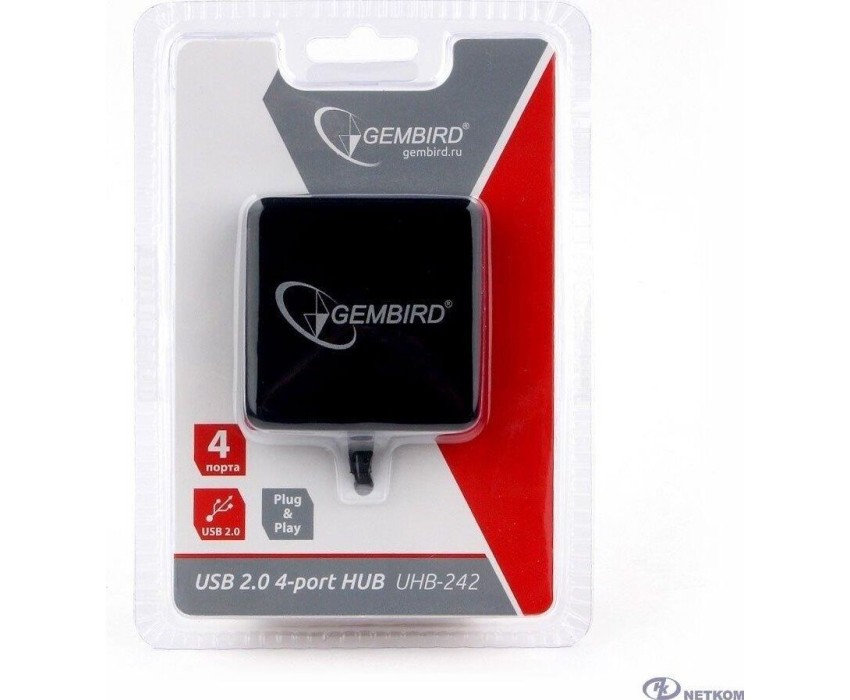 USB хаб GEMBIRD (UHB-242) концентратор USB 2.0 4 порта черный