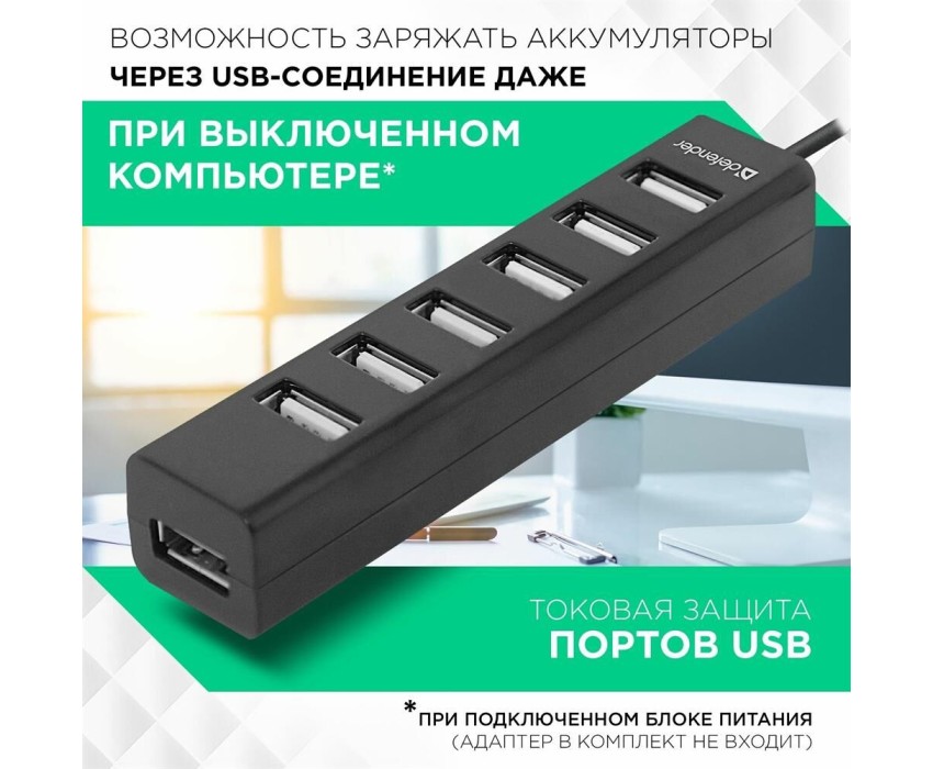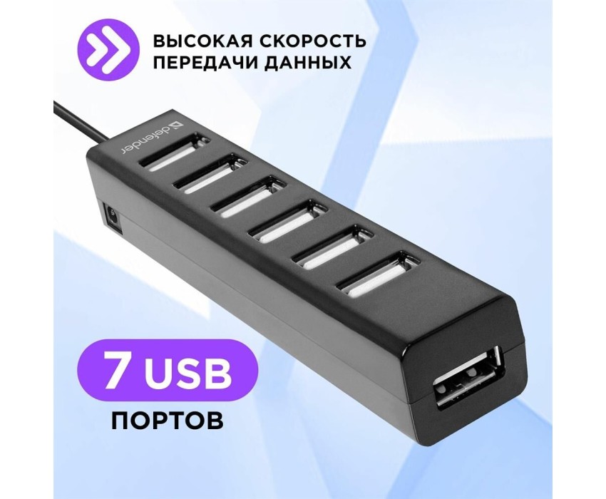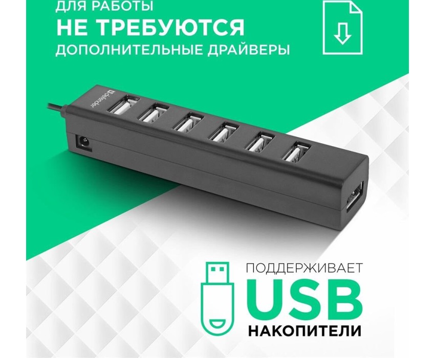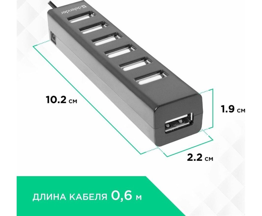 Интерфейс: USB 2.0, Кол-во портов: 7 портов USB 2.0, Питание От USB-порта, Максимальный ток USB-порта: 0,5 А, Материал корпуса: Пластик, ROHS / CE, Длина кабеля: 0.6 м.