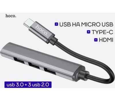 USB-хаб HOCO (6931474765468) HB26 Metal Grey