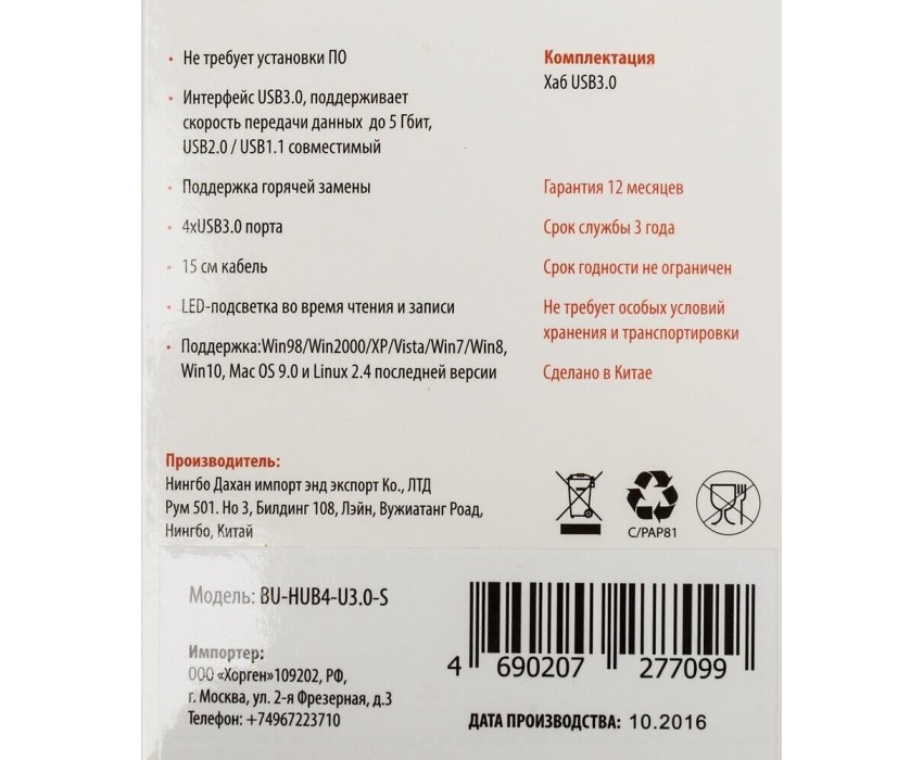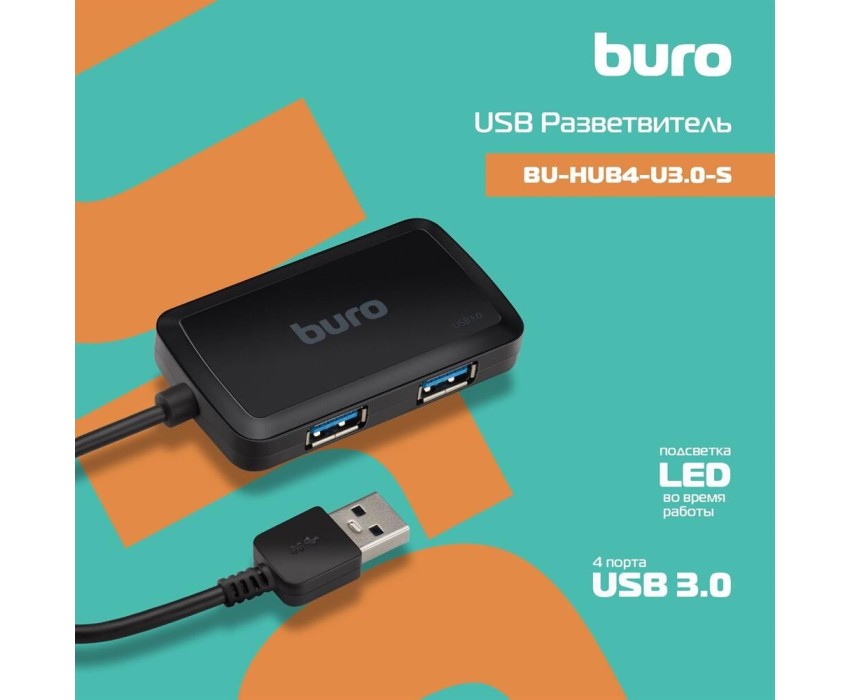 BURO Разветвитель USB 3.0 BU-HUB4-U3.0-S 4порт. черный