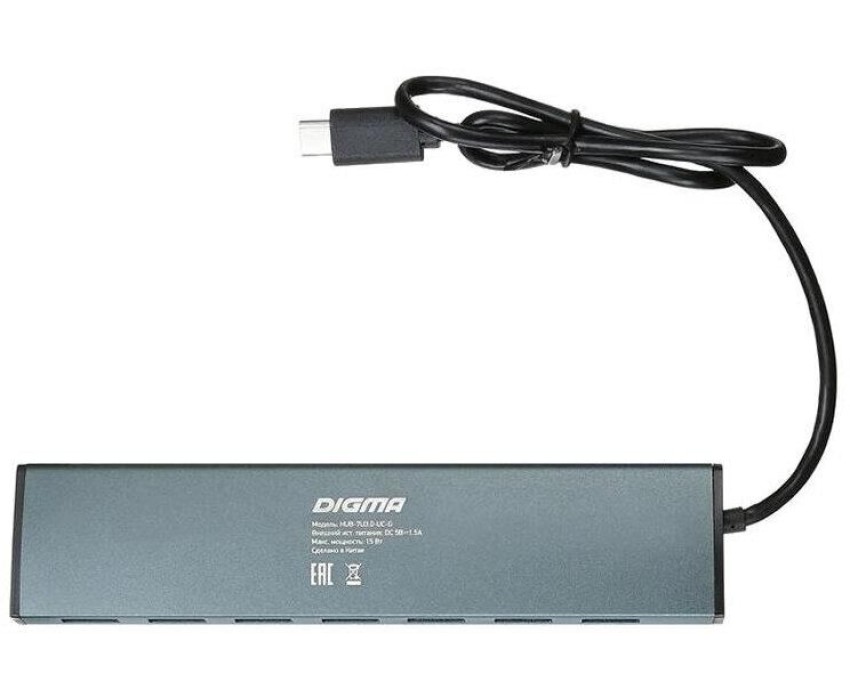 DIGMA Хаб (разветвитель) HUB-7U3.0-UC-G, серый