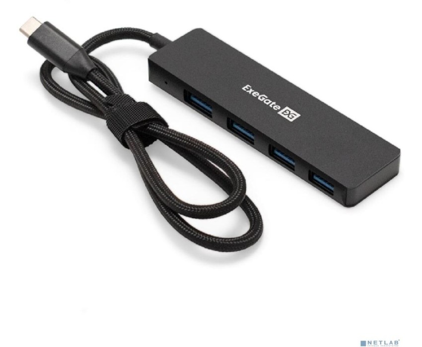 Exegate EX297631RUS USB-Хаб (концентратор) 4-в-1 ExeGate DUB-4C/3 (кабель-адаптер USB Type C --> 4xUSB3.0, Plug&Play, черный)