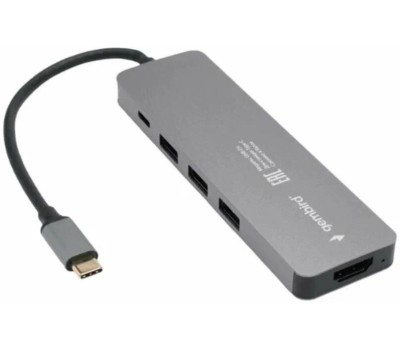 [Контроллер] Gembird Док-станция Type-C 5в1: 3xUSB3.1, PD100W, HDMI, кабель 17см, алюминий (UHB-D1)