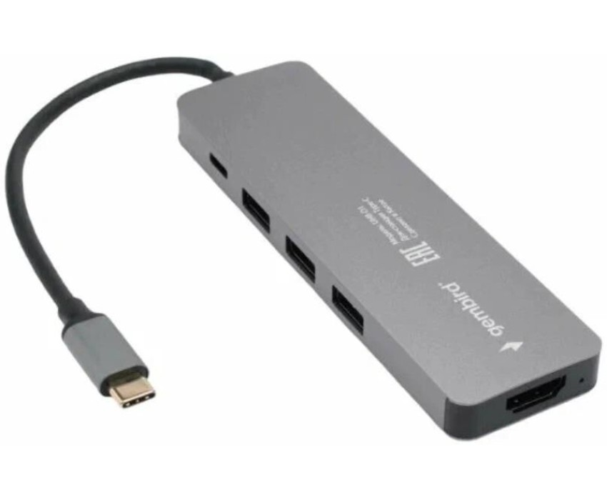 Gembird Док-станция Type-C 5в1: 3xUSB3.1, PD100W, HDMI, кабель 17см, алюминий (UHB-D1)