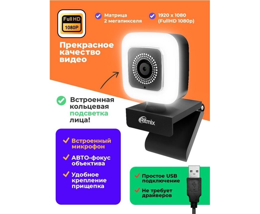 RITMIX Web-камера RVC-220, черный/белый [80001869]