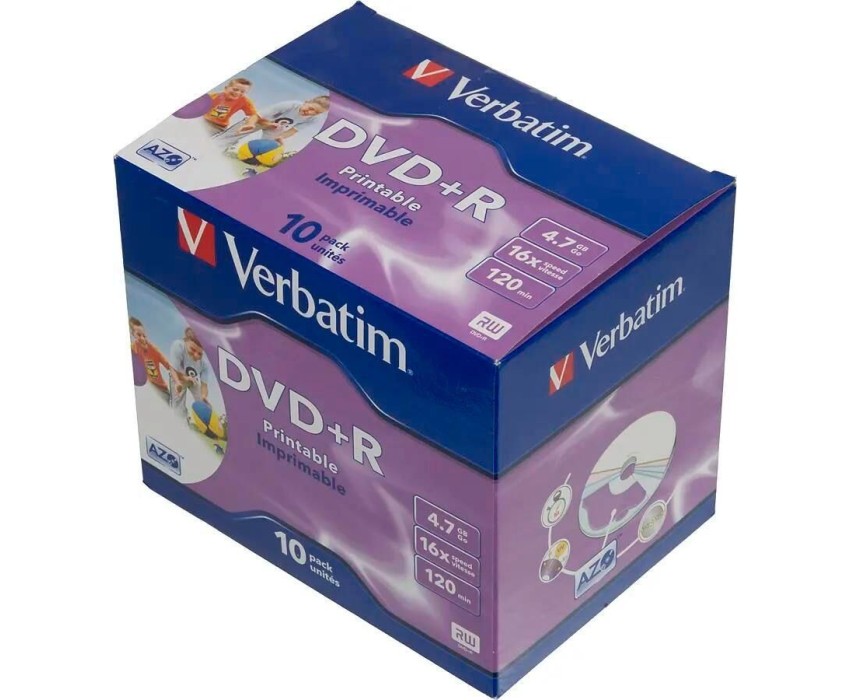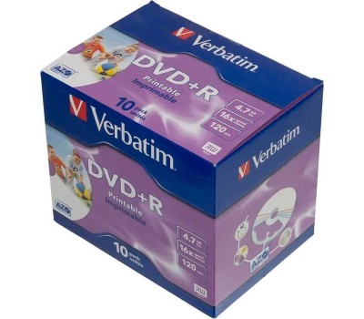 VERBATIM Оптический диск DVD+R 4.7ГБ 16x, 10шт., jewel case, printable [43508]