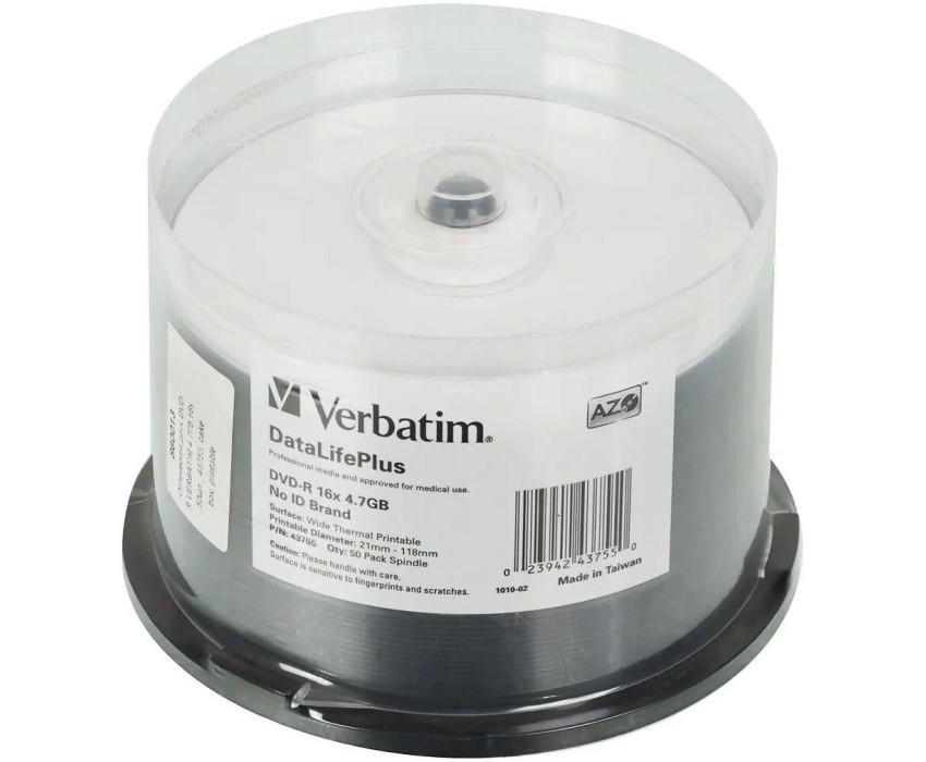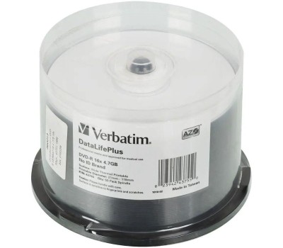 VERBATIM Диск DVD-R 4.7Gb 16x Cake Box (50шт) Printable (43755)