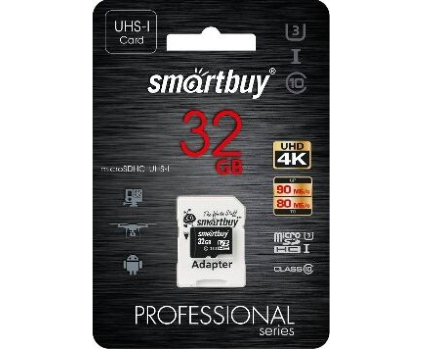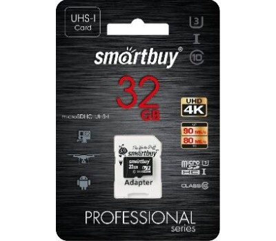 Карта памяти SMARTBUY (SB32GBSDCL10U3-01) MicroSDHC 32GB Class10 PRO (U3) + адаптер