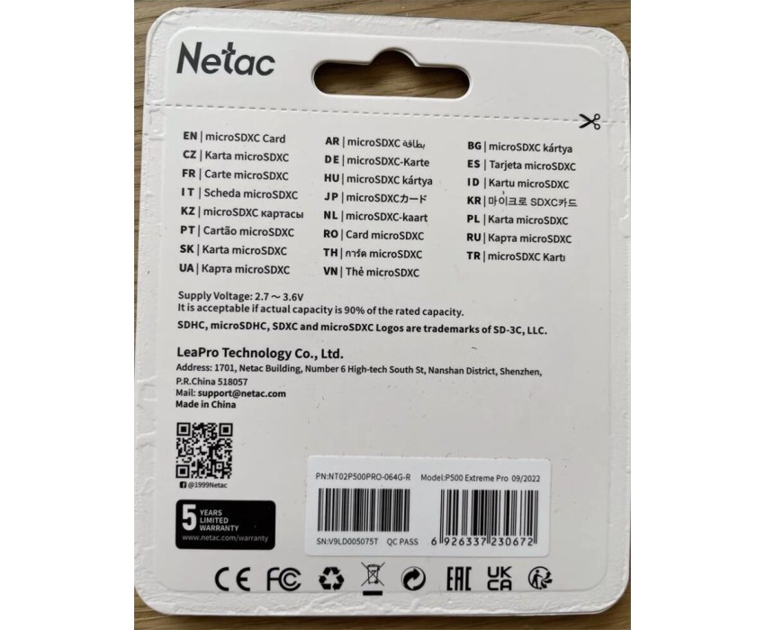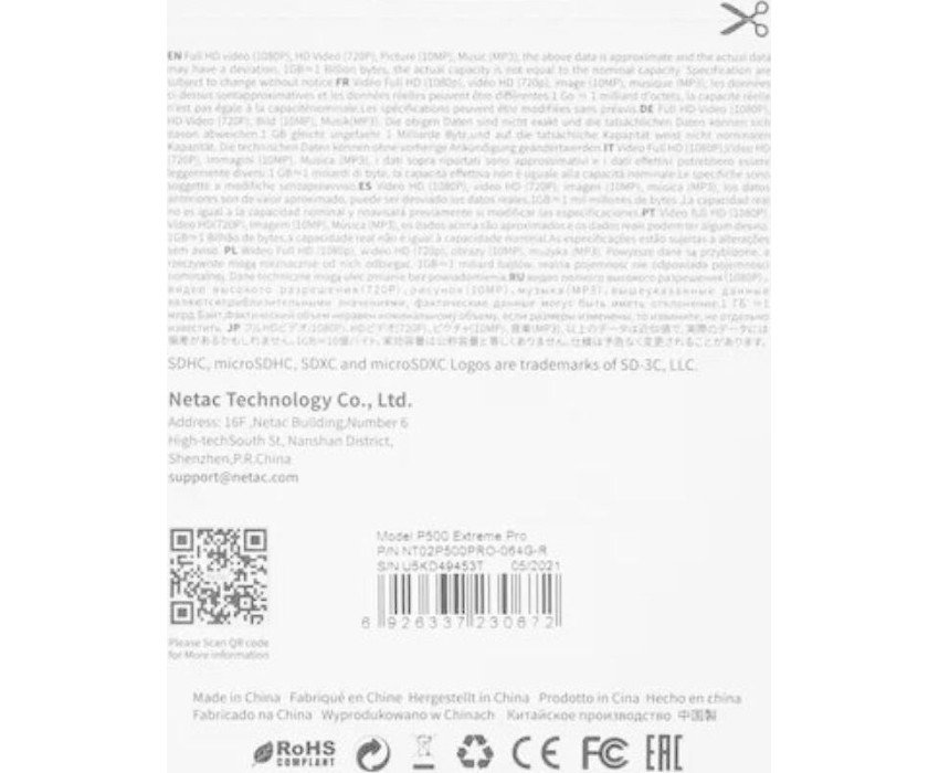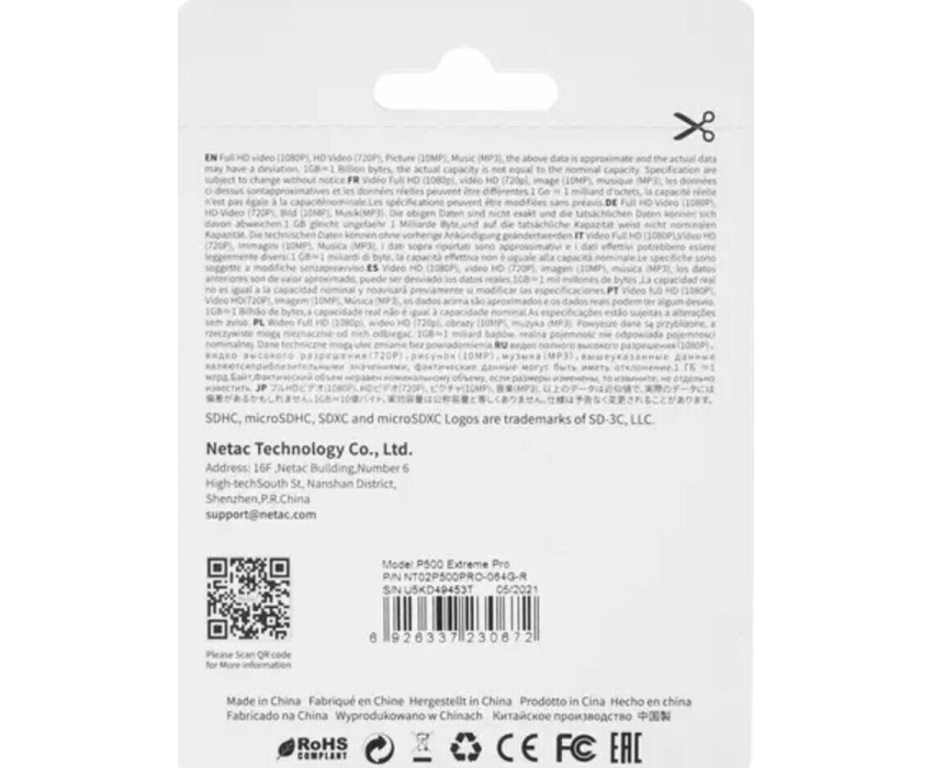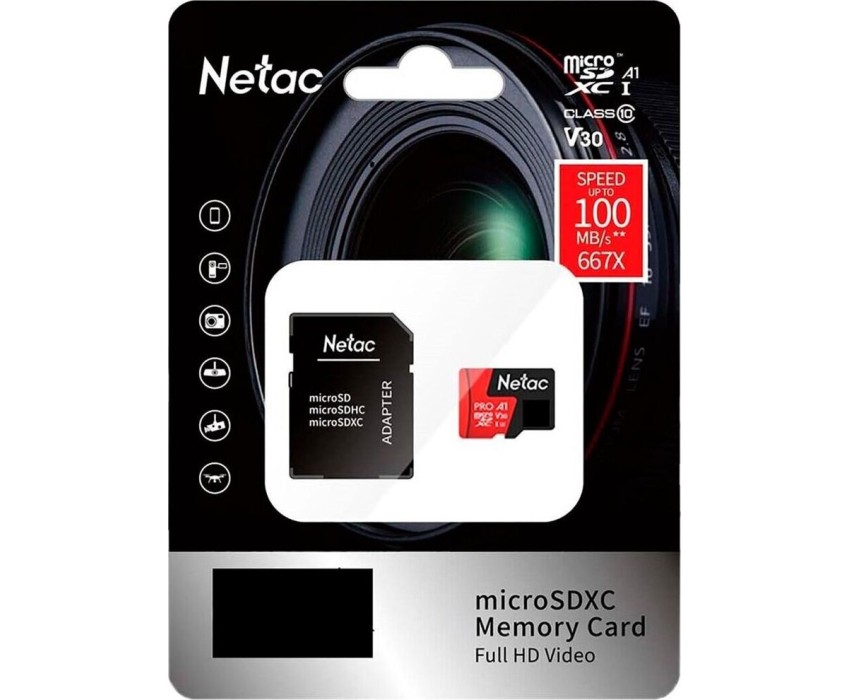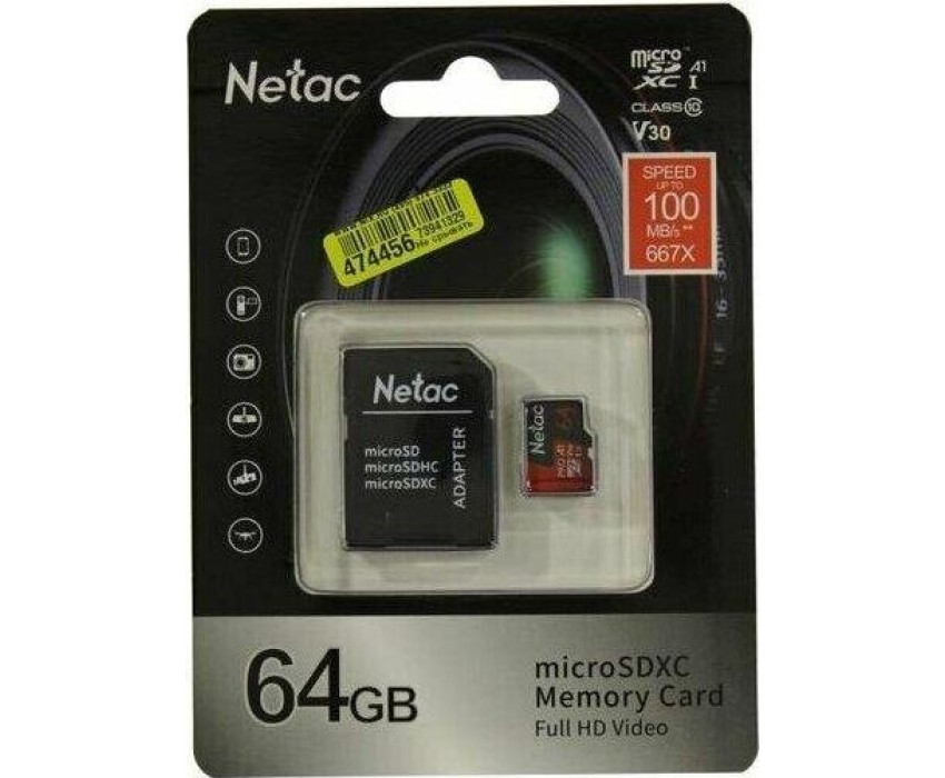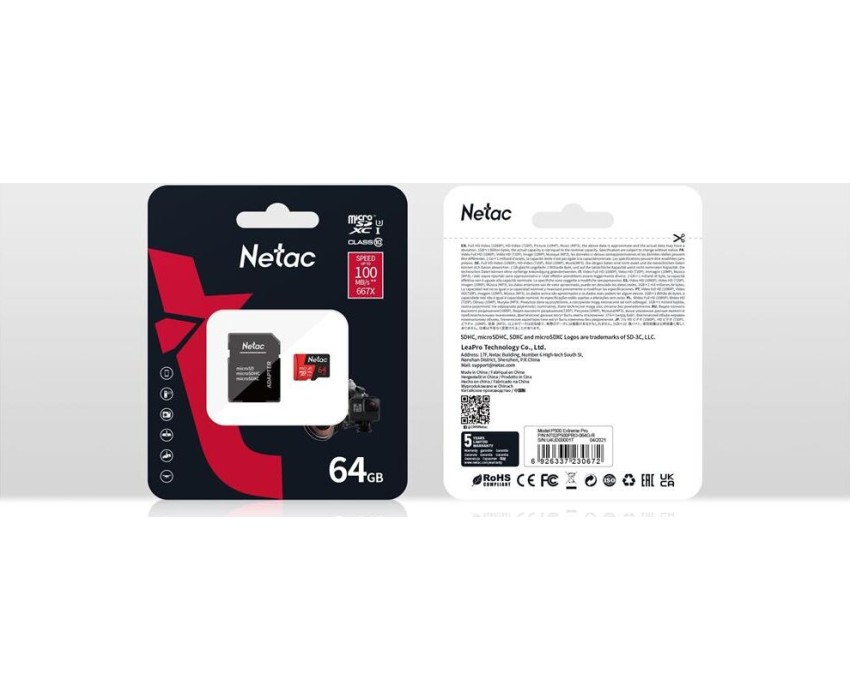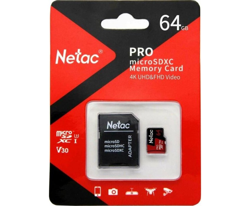 Карта памяти NETAC 64Gb MicroSD P500 Extreme Pro + SD adapter (NT02P500PRO-064G-R)