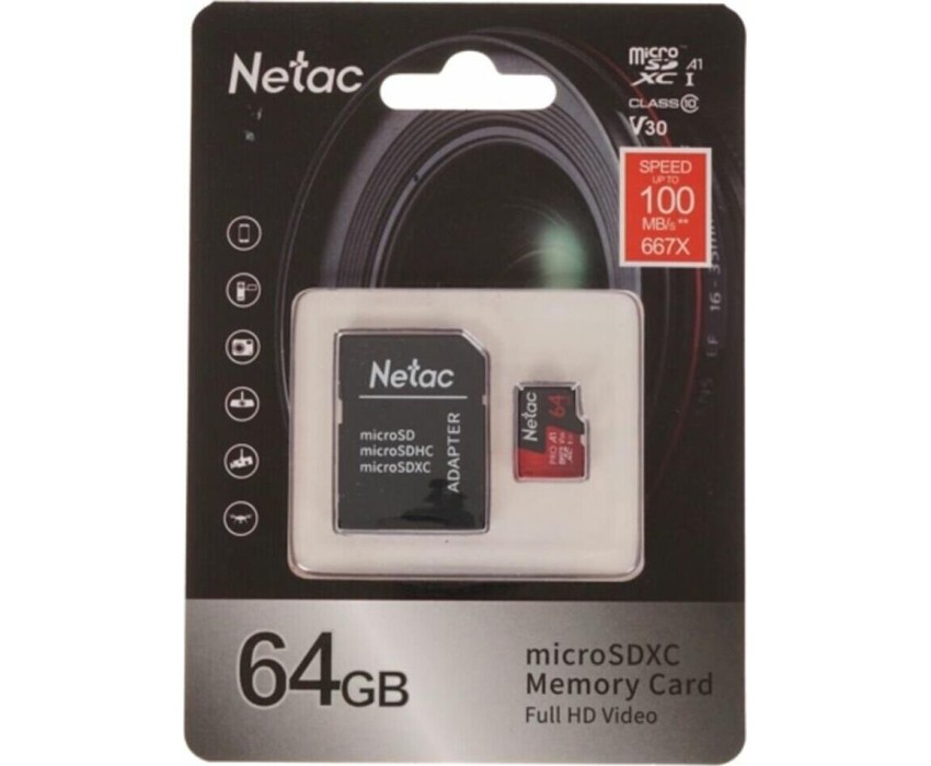 Объем памяти: 64 Гб, класс скорости: Class 10, UHS Class 3, тип: microSDXC, чтение до: 100 Мб/с, адаптер на SD, NT02P500PRO-064G-R