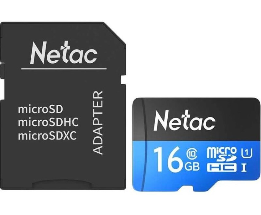 NETAC Карта памяти microSDHC UHS-I U1 P500 16 ГБ, 80 МБ/с, Class 10, NT02P500STN-016G-R, 1 шт., переходник SD