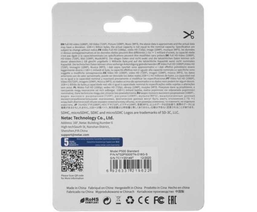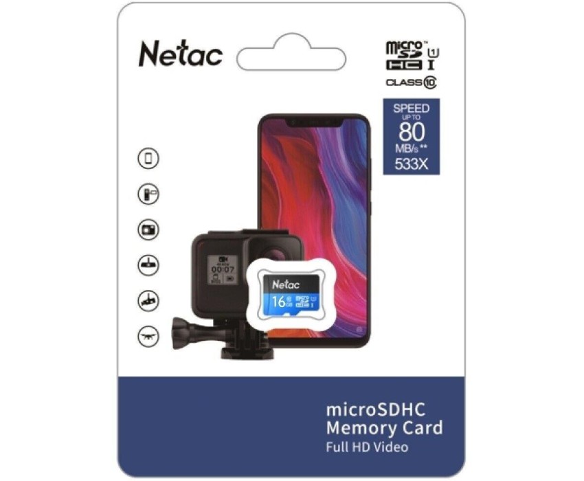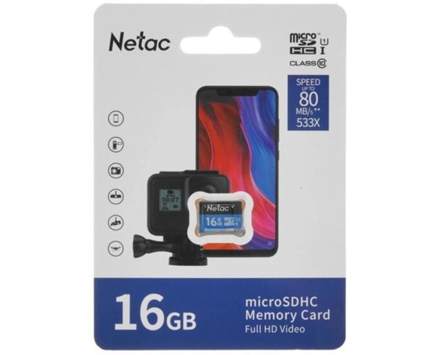 NETAC Карта памяти microSDHC UHS-I U1 P500 16 ГБ, 80 МБ/с, Class 10, NT02P500STN-016G-S, 1 шт