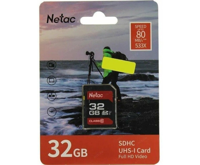 NETAC Карта памяти SDHC UHS-I U1 P600 32 ГБ, 80 МБ/с, Class 10, NT02P600STN-032G-R, 1 шт., без адаптера